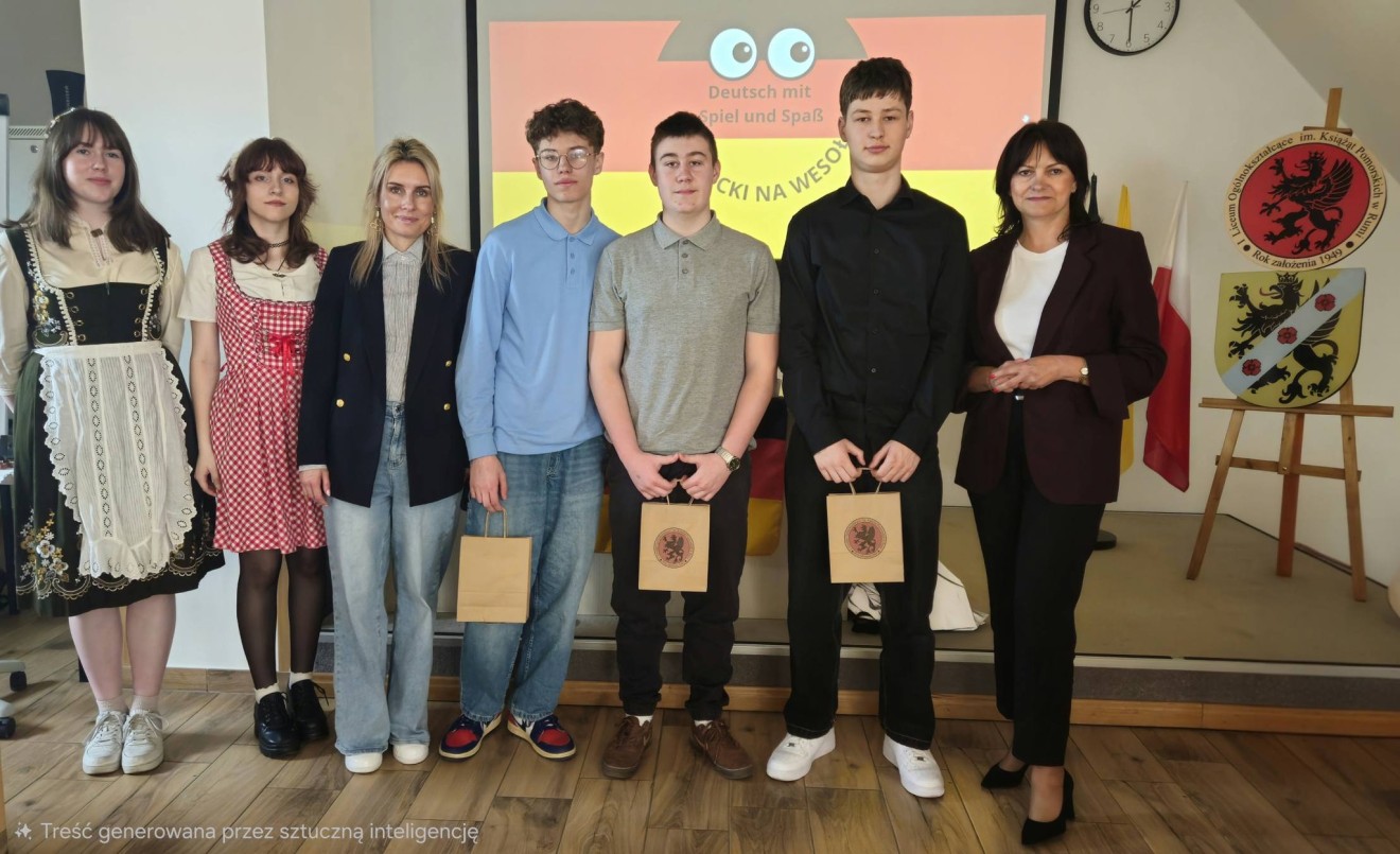 Dnia 13 kwietnia 2026 r. w naszej szkole odbył się II i III etap konkursu języka niemieckiego „Deutsch mit Spiel und Spaß, czyli niemiecki na wesoło”. Do udziału w nim zakwalifikowali się uczniowie klas VII i VIII szkół podstawowych, którzy przystąpili do rywalizacji w trzyosobowych zespołach.