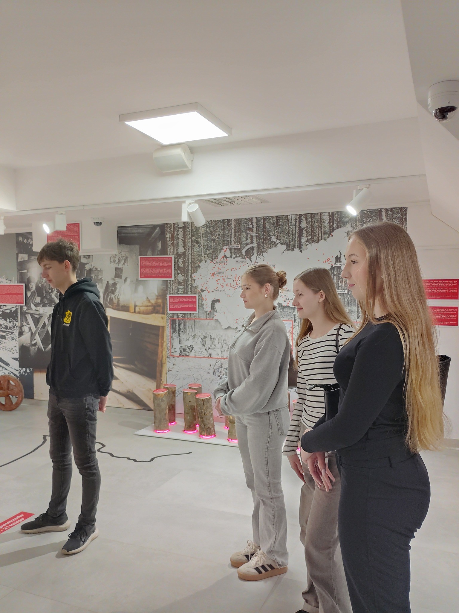 W dniu 10 kwietnia 2026 roku, uczennice naszego Szkolnego koła regionalnego, skorzystały z zaproszenia Klubu Studenckiego „Pomorania” i Muzeum Piśmiennictwa i Muzyki Kaszubsko-Pomorskiej w Wejherowie, na warsztaty, które miały na celu rozwijanie kompetencji poznawczych uczniów, z tematyki dziejów i kultury Pomorza. W trakcie spotkania zwiedziliśmy wystawę w Książnicy Gerarda Labudy „Jak Ruscë przëszlë. Kaszëbë 1945”, po której oprowadził nas twórca projektu dr Michał Hinc. Po obejrzeniu wystawy odbył się panel dyskusyjny na temat tragicznych losów Kaszubów po wkroczeniu Armii Czerwonej w 1945 r. Kolejnym punktem programu była prezentacja Klubu Studenckiego „Pomorania” z Uniwersytetu Gdańskiego, mówiąca o międzynarodowej działalności jej członków. W dalszej kolejności, na prośbę Zrzeszenia Kaszubsko Pomorskiego, opracowywaliśmy pomysły na projekt obywatelski z ramienia tej organizacji. Spotkanie dało uczniom poczucie, że mają wpływ na wszechstronny rozwój Pomorza, i że są przyszłością tej ziemi. Bardzo dziękujemy Panu doktorowi Michałowi Hincowi i Dyrekcji MPiMK-P oraz Klubowi Studenckiemu „Pomorania” z UG za zaproszenie i poświęcony mam czas.
