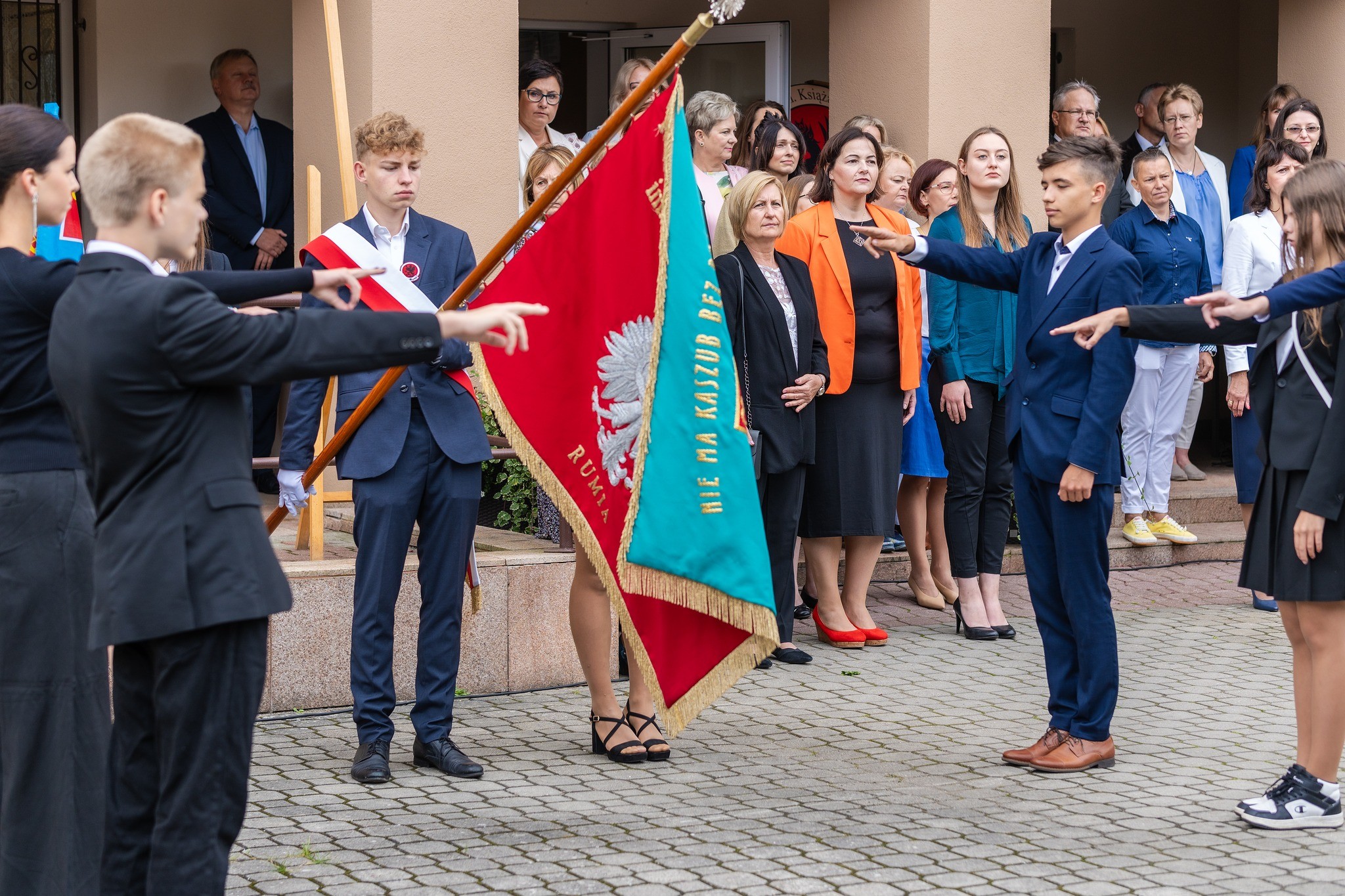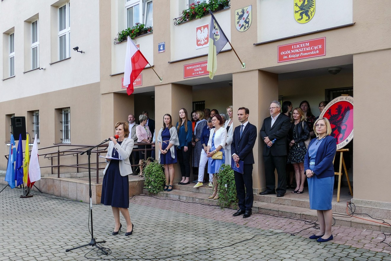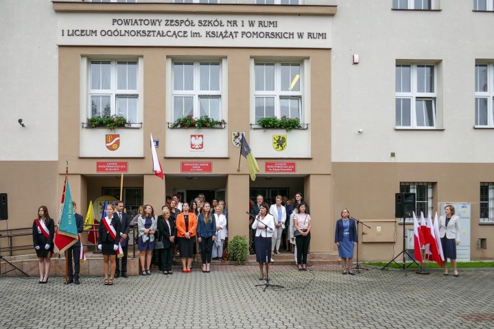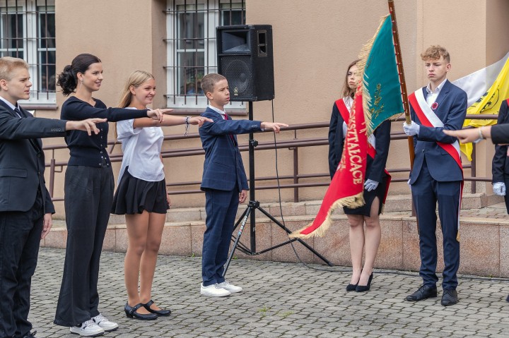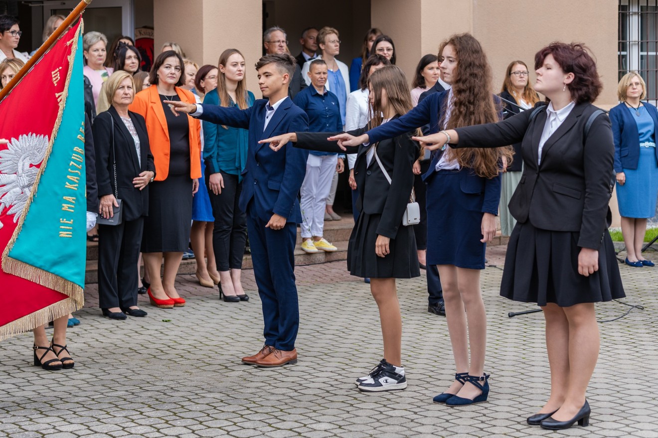 W poniedziałek 4 września zadzwonił dzwonek otwierający nowy rok szkolny 2023/2024, dla pierwszoklasistów o 08.30, a dla uczniów klas II, III i IV o 10.30. Pierwszoklasiści reprezentowali naszą szkołę bardzo licznie, bo w tym roku powstało aż osiem klas pierwszych. Przywitała ich Pani dyrektor, Lucyna Penkowska, przedstawiając PZS nr 1 w Rumi jako nowoczesną szkołę z tradycjami i wyrażając nadzieję, że nowi uczniowie nie tylko odnajdą się w szkole o takim profilu, ale będą też odnosić w niej sukcesy. Następnie przedstawieni zostali wychowawcy klas pierwszych oraz wszyscy nauczyciele. Kolejnym punktem tej części uroczystości było złożenie przez uczniów klas pierwszych przyrzeczenia, w którym zobowiązali się, że będą godnie reprezentować szkołę.