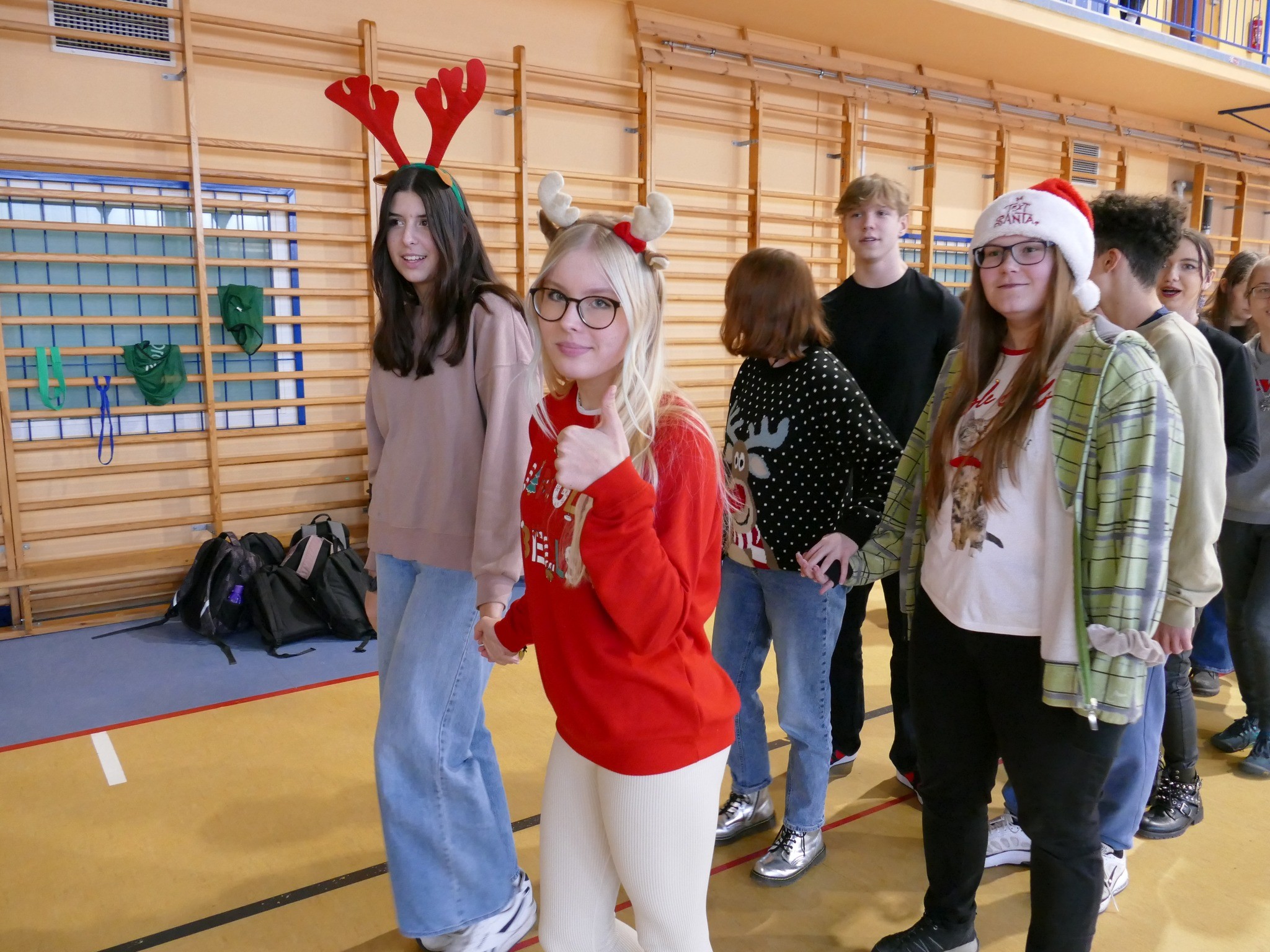 Dodatkową atrakcję na ten dzień przygotowały nauczycielki języka angielskiego. Był nią świąteczny quiz (oczywiście w języku angielskim🇬🇧), którego ukończenie dawało kupon chroniący przed niezapowiedzianą kartkówką czy odpowiedzią ustną. Poza tym, skosztować można było przepysznych pierniczków .