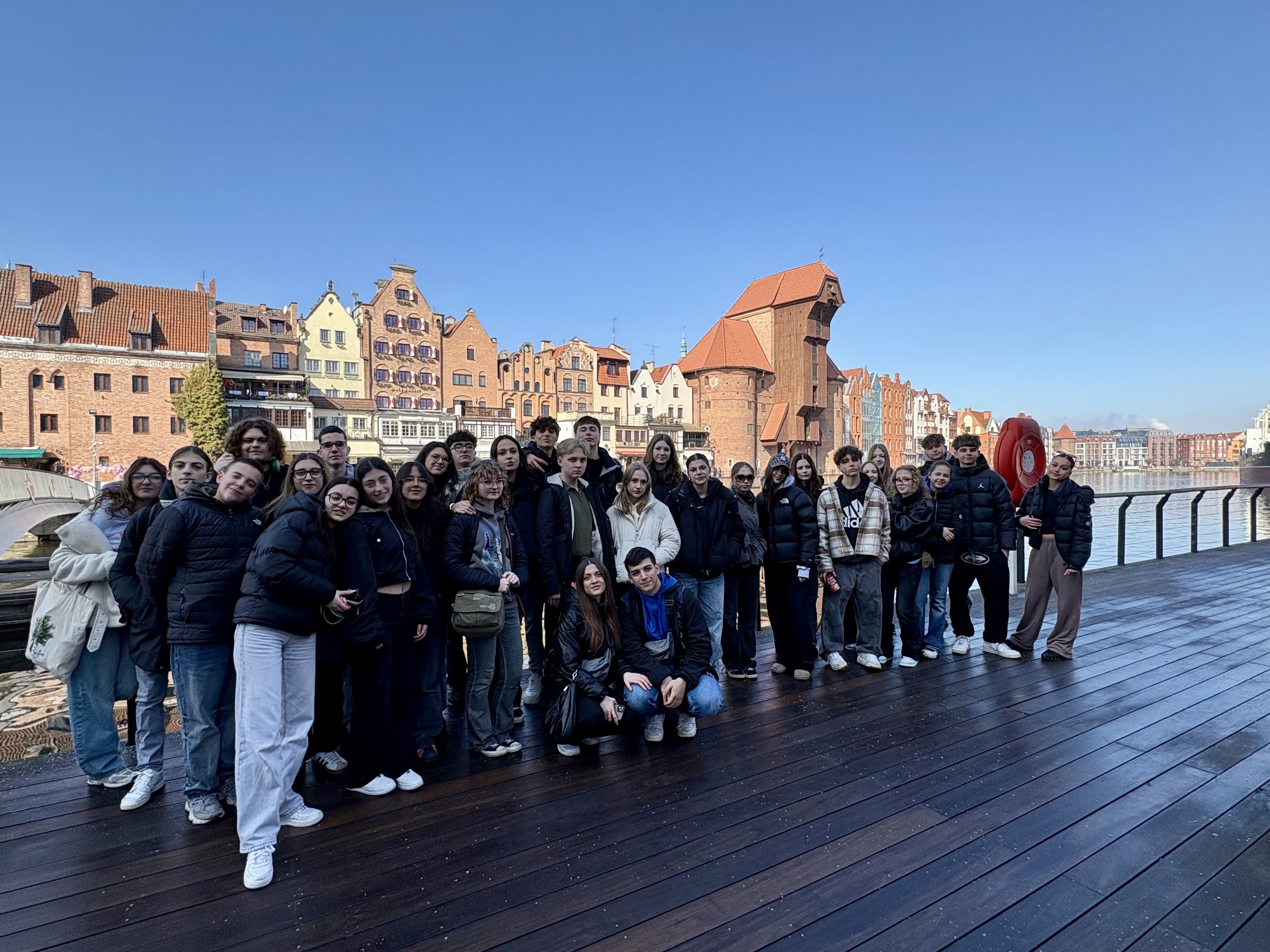 W dniach 16-20 marca 2026r. nasze szkolne korytarze wypełnił radosny gwar języka włoskiego! Już po raz trzeci mieliśmy ogromną przyjemność gościć grupę młodzieży z zaprzyjaźnionej szkoły IISS MAJORANA w Martina Franca. Był to czas pełen wzruszeń i budowania relacji – młodzi Włosi zamieszkali w domach uczniów, których sami gościli w słonecznej Apulii w październiku ubiegłego roku. Wyjątkowy charakter tej wizyty podkreśliła obecność pani dyrektor Anny Marii Gabrielli Mele, która znalazła się w gronie opiekunów. Program tygodnia był niezwykle intensywny. Wspólnie odkrywaliśmy uroki Trójmiasta oraz gotycki klimat Torunia. Nie zabrakło zabaw językowych i quizów, które udowodniły, że dla młodych Europejczyków bariery nie istnieją. Uczniowie doświadczyli też emocji podczas turnieju gry laserowej w Zoltarze. Niezmiernie cieszy nas fakt, że nasi uczniowie mogą doświadczać „europejskiego wymiaru” edukacji z pierwszej ręki. Takie spotkania to coś więcej niż zwiedzanie – to lekcja tolerancji, otwartości i przyjaźnie, które często zostają na całe życie.