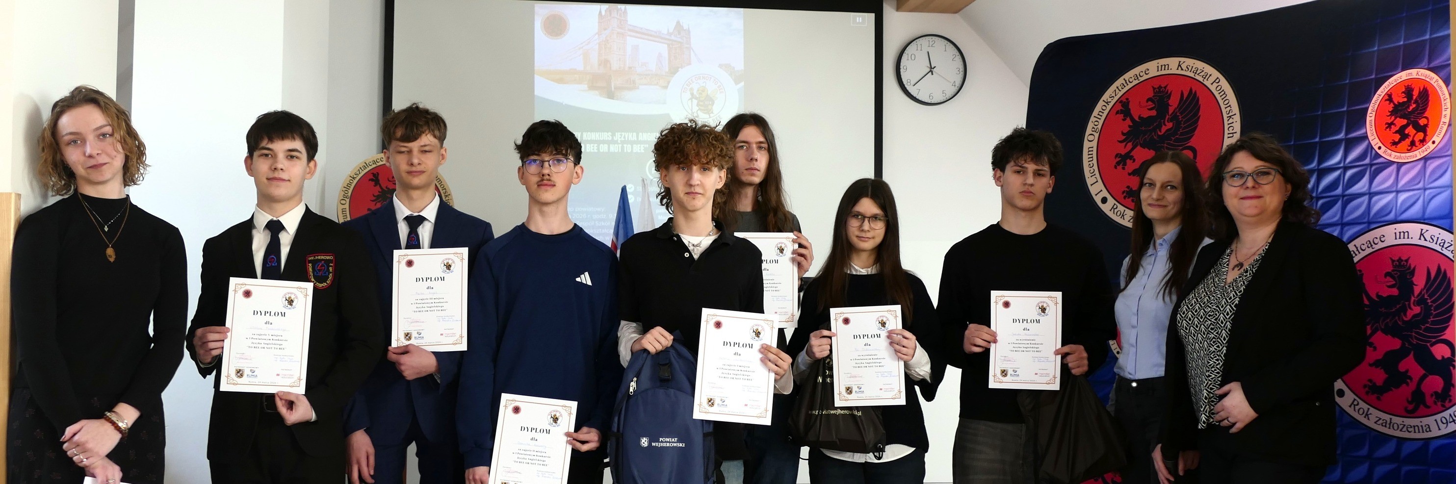 W dniu 11 kwietnia 2026 roku, uczennice naszego Szkolnego koła regionalnego, wzięły udział XXXVII finale Wojewódzkiego Konkursu Wiedzy o Pomorzu, który odbył się na Uniwersytecie Gdańskim. Konkurs organizowany był przez Klub Studencki „Pomorania” i Uniwersytet Gdański. Założeniami Konkursu było poszerzenie wiedzy uczniów szkół ponadpodstawowych z zakresu historii, literatury regionalnej, geografii oraz kultury Pomorza, zachęcenie młodzieży do samodzielnego zdobywania wiedzy o Pomorzu i pogłębiania jej. Uczestnicy musieli zmierzyć się z finałowym testem pisemnym zawierającym 60 pytań. W kolejnym etapie siódemka uczniów, którzy najlepiej napisali test, stanęła przed jury konkursowym w składzie: dr Michał Kargul – historia, dr Grzegorz Schramke – literatura, dr Katarzyna Jereczek-Korzeniewska – geografia, dr Tomasz Fopke – kultura, i odpowiadała, na wymagające dużej wiedzy, pytania otwarte. W efekcie zmagań konkursowych dwie uczennice naszej szkoły, Agnieszka Najdowska i Zuzanna Kiełb, otrzymały tytuł laureata, a Karina Kolianova - finalisty konkursu. Agnieszka zajęła II miejsce w tym prestiżowym konkursie. Gratulujemy uczennicom wiedzy i pasji w poznawaniu dziejów i kultury Pomorza. Opiekun merytoryczny – Grażyna Górak