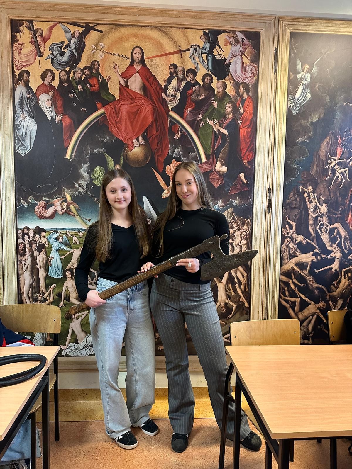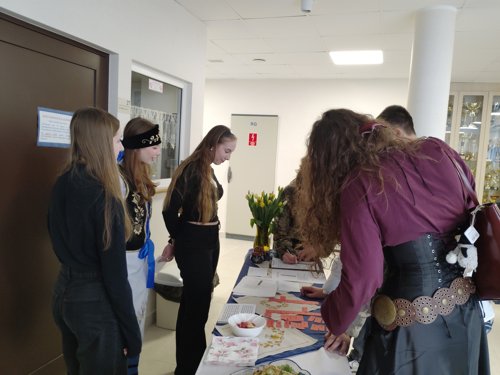 W dniu 10 kwietnia 2026 roku, uczennice naszego Szkolnego koła regionalnego, skorzystały z zaproszenia Klubu Studenckiego „Pomorania” i Muzeum Piśmiennictwa i Muzyki Kaszubsko-Pomorskiej w Wejherowie, na warsztaty, które miały na celu rozwijanie kompetencji poznawczych uczniów, z tematyki dziejów i kultury Pomorza. W trakcie spotkania zwiedziliśmy wystawę w Książnicy Gerarda Labudy „Jak Ruscë przëszlë. Kaszëbë 1945”, po której oprowadził nas twórca projektu dr Michał Hinc. Po obejrzeniu wystawy odbył się panel dyskusyjny na temat tragicznych losów Kaszubów po wkroczeniu Armii Czerwonej w 1945 r. Kolejnym punktem programu była prezentacja Klubu Studenckiego „Pomorania” z Uniwersytetu Gdańskiego, mówiąca o międzynarodowej działalności jej członków. W dalszej kolejności, na prośbę Zrzeszenia Kaszubsko Pomorskiego, opracowywaliśmy pomysły na projekt obywatelski z ramienia tej organizacji. Spotkanie dało uczniom poczucie, że mają wpływ na wszechstronny rozwój Pomorza, i że są przyszłością tej ziemi. Bardzo dziękujemy Panu doktorowi Michałowi Hincowi i Dyrekcji MPiMK-P oraz Klubowi Studenckiemu „Pomorania” z UG za zaproszenie i poświęcony mam czas.