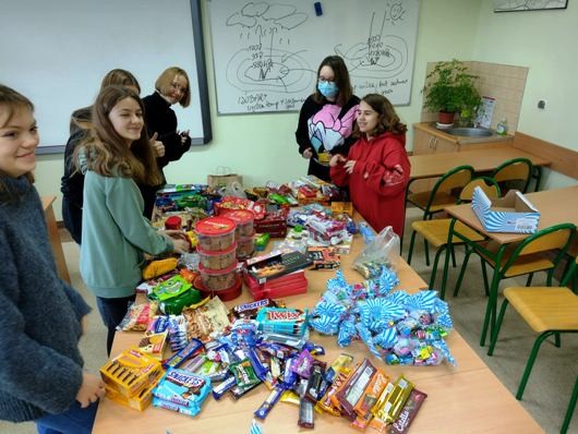 Uczniowie naszej szkoły przez dwa tygodnie przynosili słodycze dla służb mundurowych, strzegących polskich granic, jako wyraz wdzięczności dla Ich niebezpiecznej służby. Uczniowie klasy 1a, 1d i 1f zapakowali słodkości, dzięki czemu powstało około 100 paczek dla naszych żołnierzy, policji i straży granicznej. Słodkie prezenty zostaną zawiezione na granicę przez ks. Piotra Pączkowskiego jeszcze przed świętami Bożego Narodzenia. Każdej osobie, która zaangażowała się w tą piękną akcję, składam serdeczne podziękowania. Elżbieta Dziecielska Organizator zbiórki