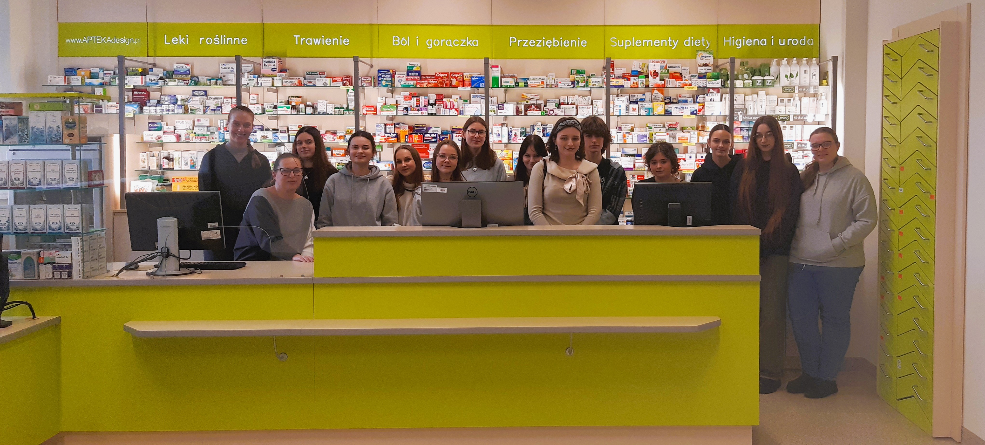 W piątek (7 lutego) uczniowie klasy drugiej, trzeciej i czwartej o profilu farmaceutyczno-medycznym uczestniczyli w przygotowanych dla nich zajęciach warsztatowych w aptece szkoleniowej pt. Nie tylko aptekarze - ścieżki kariery współczesnych farmaceutów. Zajęcia prowadził pan dr n. farm. Adrian Szewczyk z Katedry i Zakładu Chemii Fizycznej Wydziału Farmaceutycznego Gdańskiego Uniwersytetu Medycznego. Młodzież dowiedziała się o warunkach studiowania na kierunku farmaceutycznym, możliwościach dalszego rozwoju po ukończeniu na nim studiów, analizowaliśmy substancje lecznicze i mechanizmy ich działania, ćwiczyliśmy korzystanie z ogólnie dostępnych baz danych związków chemicznych i zwiedziliśmy wydział farmaceutyczny.