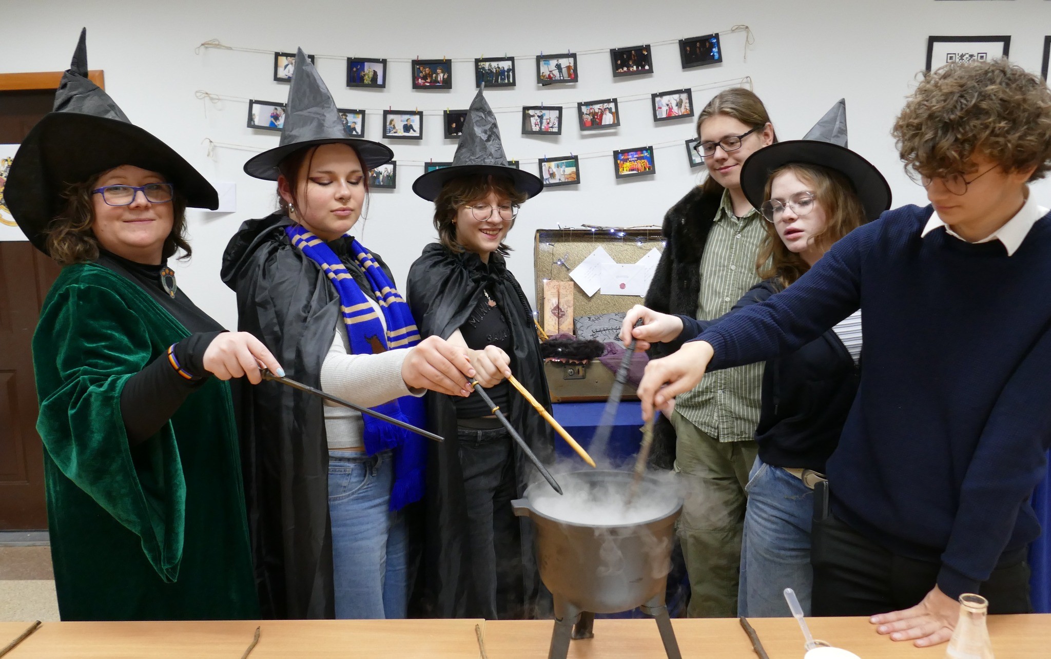28 stycznia odbyła się kolejna Noc Eksperymentów u Książąt. W czasie wydarzenia młodzi adepci nauk przyrodniczych i ścisłych mieli możliwość poznać ulubione przedmioty od nietypowej strony. Uczniowie bawili się w chemicznych detektywów, tworzyli naszyjniki z własnym DNA, ratowali planetę wydostając się z escape roomu. Szeregi nauczycieli naszej szkoły, już kolejny raz, wspomógł również wykładowca Politechniki Gdańskiej dr inż. Marcin Włoch, z którym nasi uczniowie tworzyli polimerowe Slime’y. Jak co roku goście mogli również dowiedzieć się jak działa ludzkie serce, nauczyć się podstawowych zasad pierwszej pomocy lub zagrać w grę terenową „Kieruj się na Książęta” . Ciekawe doświadczenia czekały w pracowni fizycznej. Nie zabrakło też szczypty magii podczas eksperymentów w Komnacie Tajemnic. Miłośnicy zagadek mogli rozwiązać łamigłówki w naszej pięknej bibliotece i wziąć udział w turnieju matematycznym. Na rodziców i nauczycieli czekała kawiarenka, a w niej pyszne gofry. W trakcie „nocnych eksperymentów” odwiedziły nas władze powiatu wejherowskiego.
