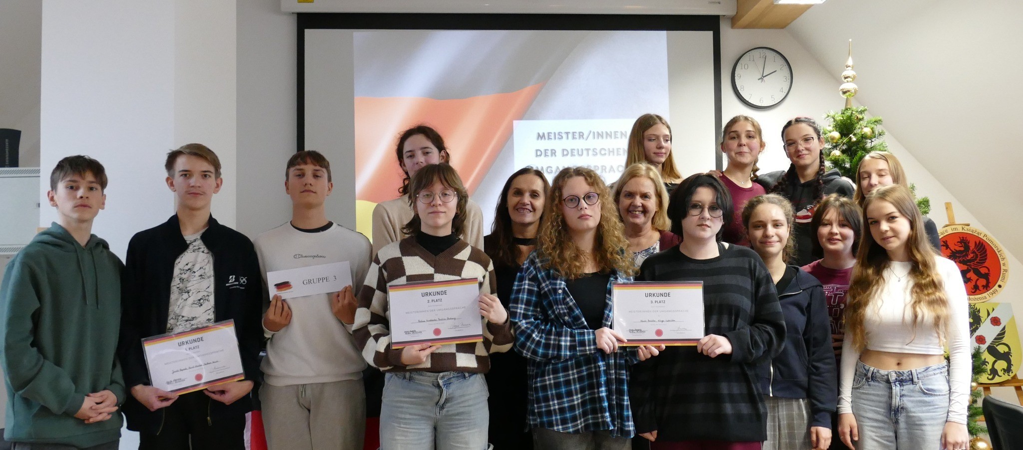 Od początku roku szkolnego grupa uczniów z klas 2 i 3 z zaangażowaniem uczestniczy w całorocznym konkursie znajomosci Niemiec z elementami języka niemieckiego. Uczniowie co miesiąc dostają jedno zadanie, np. wykonanie plakatu dotyczacego niemieckich zwyczajów kulinarnych czy nakręcenie filmiku - wywiadu ze znaną osobą. Zadaniem grudniowym było wykonanie kartki na Boże Narodzenie i napisanie życzeń świątecznych do Księcia Liechtensteinu. Wszystkie własnoręcznie, pieknie zrobione kartki zostały wysłane do zamku Vaduz. Miłą niespodzianką jest to, że ostatnio w odpowiedzi nasza szkoła otrzymała od Księcia Hansa Adama II życzenia noworoczne.