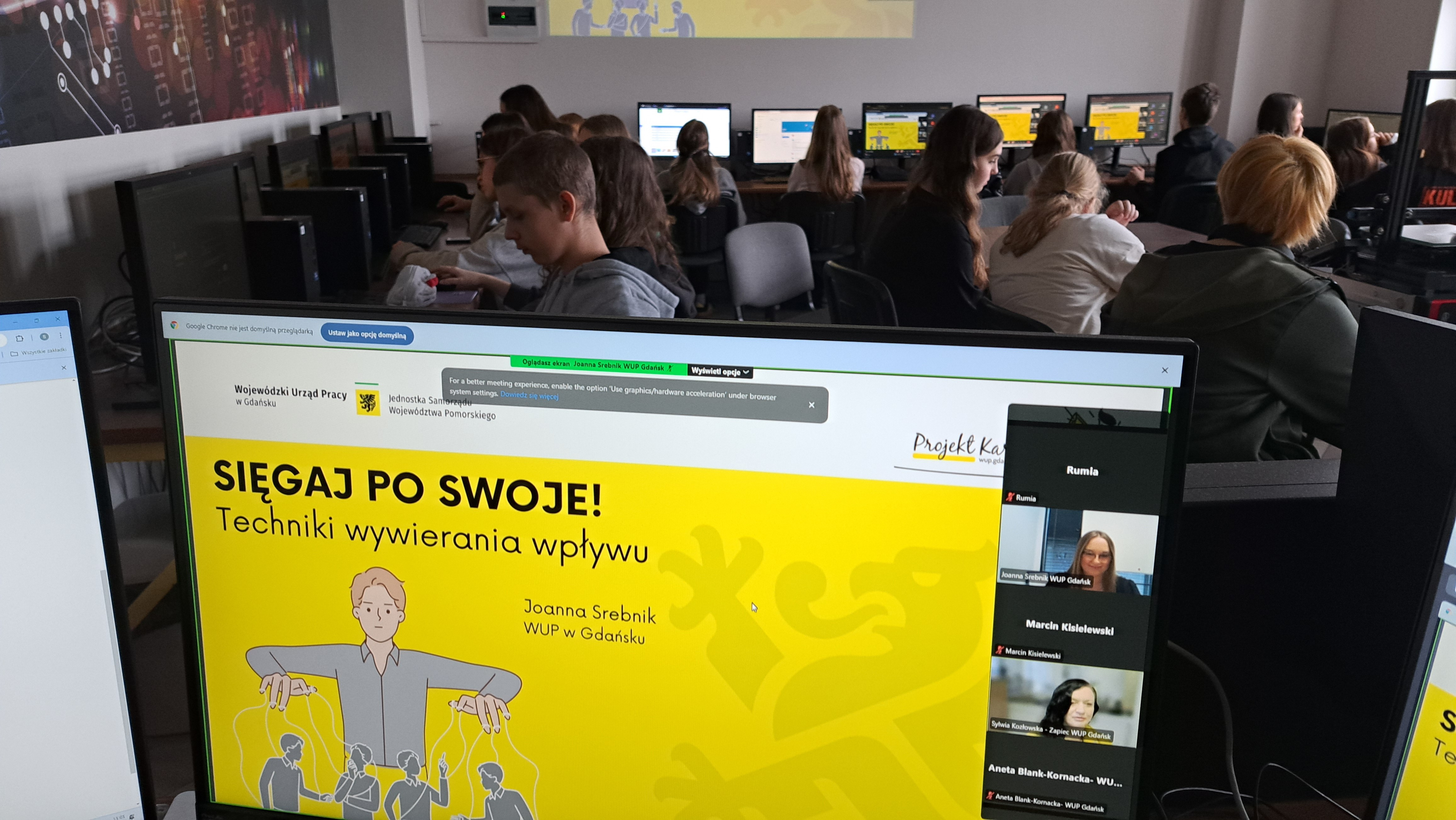 W listopadzie w ramach akcji "Projekt Kariera" nasi uczniowie mieli możliwość uczestniczenia w webinarach organizowanych przez Wojewódzki Urząd Pracy w Gdańsku. Tematyka webinarów koncentrowała się na szeroko rozumianej przedsiębiorczości i jej roli w rozwoju młodych Pomorzan. Celem wykładów było wsparcie młodych ludzi w świadomym budowaniu ścieżki edukacyjno-zawodowej. Dodatkowo we współpracy z Powiatowym Urzędem Pracy w Gdyni dla naszych ucznów został poprowadzony wykład przez Doradcę Zawodowego Panią Monikę Grzelak pt." Pracownicy młodociani na rynku pracy. Moja pierwsza praca". Spotkanie miało na celu zainspirować ucznów do podejmowania pracy już w młodym wieku oraz podejmowania przemyślanych decyzji dotyczących zakładania własnej działalności gospodarczje.