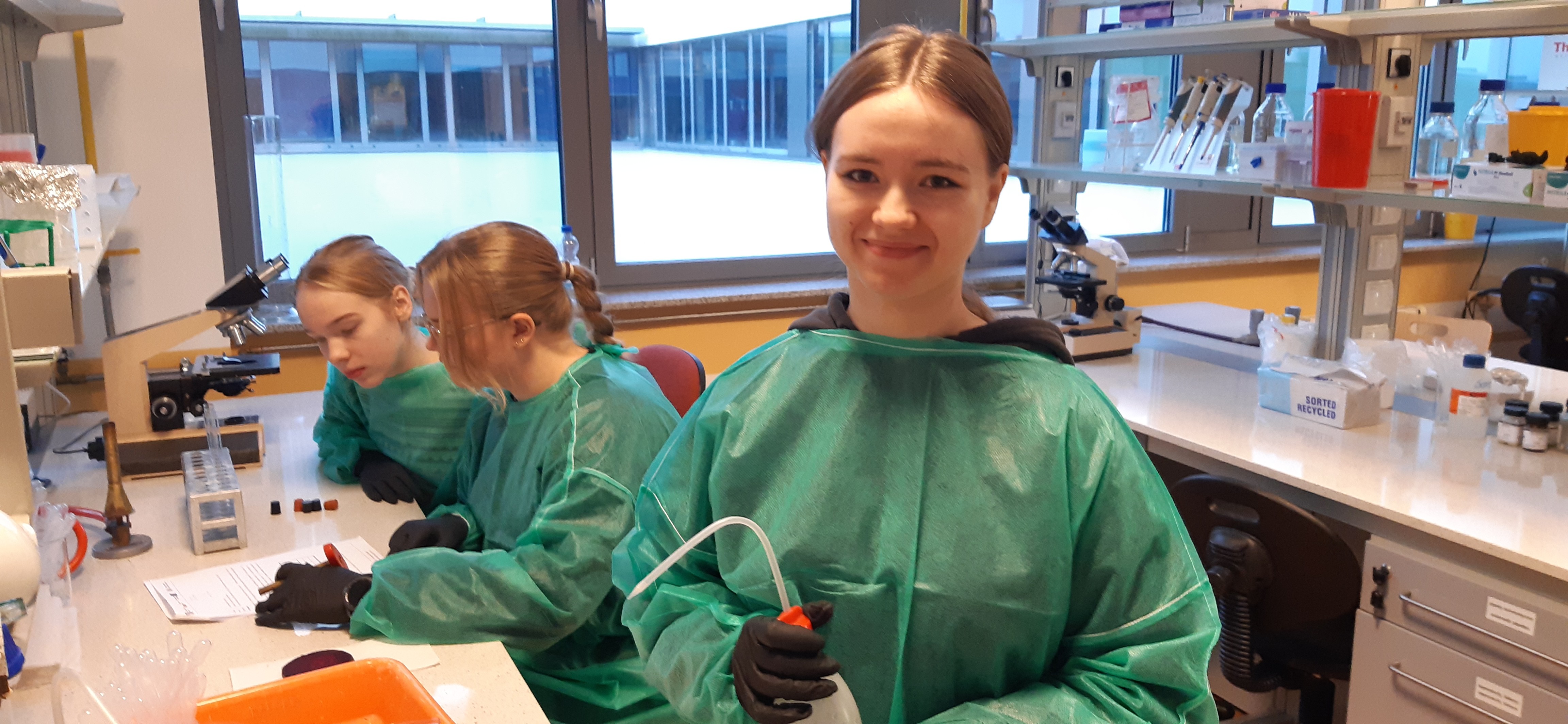 Uczennice klasy 3c, 3f, 2c w ostatni poniedziałek (02.12.) uczestniczyły w Spotkaniu z nauką, organizowanym przez pracowników Katedry Biologii Eksperymentalnej i Biotechnologii Roślin Wydziału Biologii Uniwersytetu Gdańskiego w ramach realizacji projektu Zdolni z Pomorza 2.0 - Uniwersytet Gdański. Uczestniczyły w warsztatach z zakresu plazmolizy kapturowej, procesu powstawania komórek Traubego, przepuszczalności błon plazmatycznych, rozróżniania barwników roślinnych, właściwości antocyjanów.