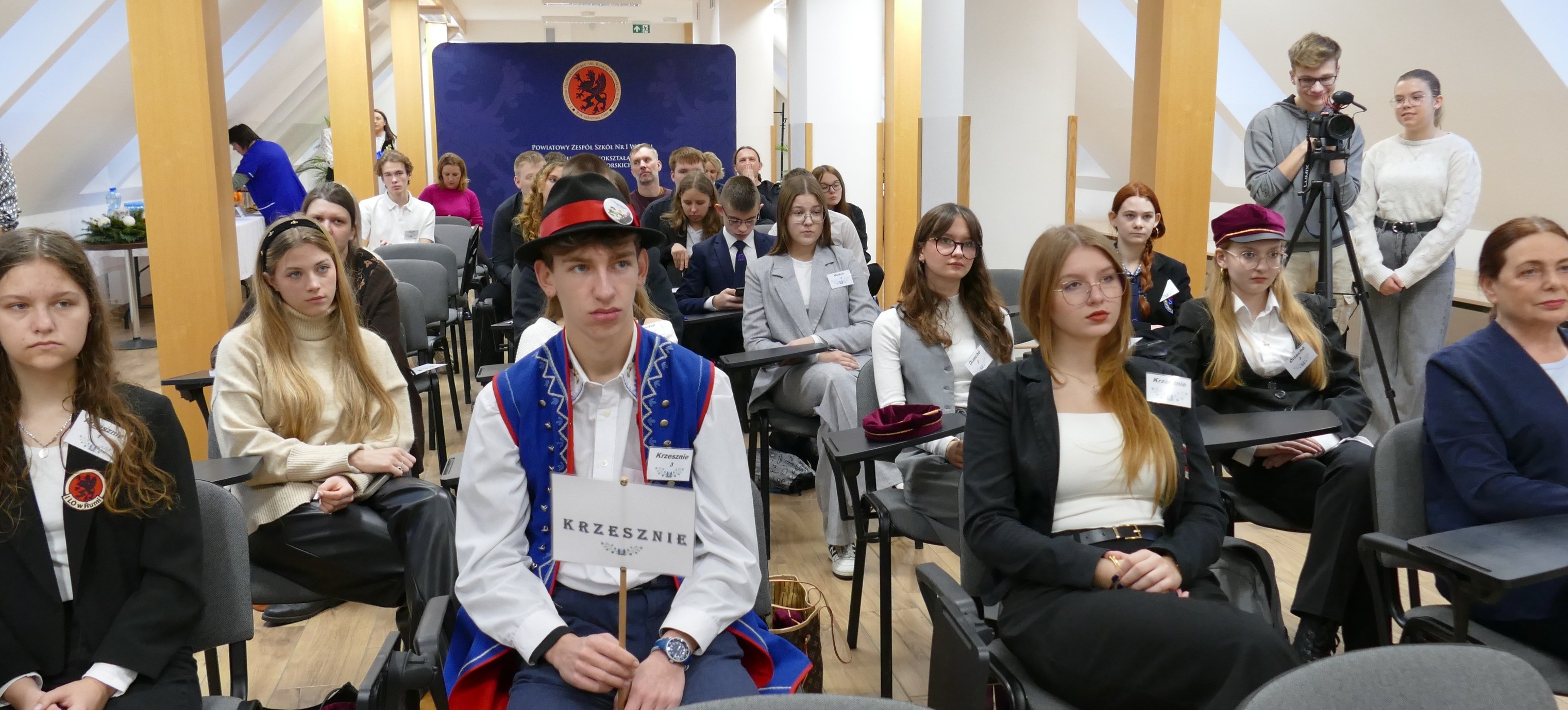 VII Wojewódzka Olimpiada Wiedzy o Kaszubach i Pomorzu 4 grudnia 2024 roku 4 grudnia nasza szkoła po raz siódmy gościła uczestników Wojewódzkiej Olimpiady Wiedzy o Kaszubach i Pomorzu, w której tym raz wzięło udział 7 szkół ponadpodstawowych regionu. Trzyosobowe drużyny wraz z opiekunami przybyły z następujących placówek: I Liceum Ogólnokształcące im. H. Derdowskiego w Kartuzach, PZS nr 1 w Wejherowie, PZS nr 2 w Wejherowie, PZS nr 3 w Wejherowie, PZS nr 4 w Wejherowie, PZS nr 2 w Rumi oraz drużyna gospodarzy czyli PZS nr 1 w Rumi. Od wielu lat współorganizatorami Olimpiady oprócz naszej szkoły jest Starostwo Powiatowe w Wejherowie oraz Muzeum Piśmiennictwa i Muzyki Kaszubsko-Pomorskiej w Wejherowie. W gronie szacownego Jury zasiedli w tym roku: Przewodniczący Jury Pan Mateusz Szuba i Pani Beata Humeniuk-Czech (pracownicy Muzeum) oraz Pan dr Tomasz Rembalski (historyk, adiunkt w Instytucie Historii UG). Uczestnicy rywalizowali wykonując różne zadania w trzech etapach konkursowych. W pierwszym rozwiązali indywidualnie test wiedzy o Kaszubach i Pomorzu. W drugim etapie drużyny przedstawiły zainscenizowany wywiad z dziennikarzem, pisarzem i działaczem kaszubskim Lechem Bądkowskim. Trzeci etap miał charakter ustnego turnieju, w którym uczestnicy w 5 rundach odpowiadali na pytania w 4 kategoriach: działacze kaszubscy, literatura kaszubska, kultura i tradycje, geografia regionu. Wszystkie drużyny wykazały się dużą wiedzą w zakresie tematycznym Olimpiady, a także kreatywnością i umiejętnościami znajdowania, selekcjonowania i wykorzystywania informacji dostępnych w zasobach internetowych oraz innych źródłach. Mieli również okazję popisać się zdolnościami aktorskimi. Brawo i gratulacje! Wyniki tegorocznych zmagań przedstawiają się następująco: I miejsce zespołowe: PZS nr 1 w Rumi (I LO im. Książąt Pomorskich) w składzie Natalia Mączka, Marcelina Malottki, Franciszek Wandtke pod opieką Tomasza Wszałka. II miejsce zespołowe: PZS nr 1 w Wejherowie (I LO im. Króla Jana Sobieskiego) w składzie Karolina Podwojska, Kornelia Garstka, Julia Szwichtenberg pod opieką Marcina Graczyka. III miejsce zespołowe: PZS nr 3 w Rumi im. Hipolita Roszczynialskiego w składzie Jakub Klebba, Jakub Gurzęda, Kacper Kilichowski pod opieką Bartłomieja Woźniaka I miejsce indywidualne: Franciszek Wandtke z PZS nr 1 w Rumi. II miejsce indywidualne: Kornelia Garstka z PZS nr 1 w Wejherowie. III miejsce indywidualne ex aequo: Faustyna Kąkol z I LO w Kartuzach i Natalia Mączka z PZS nr 1 w Rumi. W tym roku nagrody dla zwycięzców i laureatów były szczególnie hojne, ponieważ oprócz tych tradycyjnie ufundowanych przez organ prowadzący szkołę czyli Starostwo Powiatowe, również Pani Katarzyna Szalewska, dyrektor NZOZ nr 1 w Rumi, sfinansowała nagrody dla zdobywców I miejsc. Rywalizacji uczestników przyglądali się i przysłuchiwali zaproszeni goście, a wśród Nich: Wicestarosta Pan Witold Reclaf, Przewodnicząca Komisji Edukacji Pani Krystyna Grubba, Radna Powiatowa Pani Natasza Sobczak oraz przedstawiciele oddziału ZKP w Rumi: Pani Krystyna Wolf, Panowie Józef Lanc i Wojciech Miotke. Swoją obecnością zaszczyciła nas również małżonka Patrona naszej Olimpiady Jerzego Hoppego, Pani Elżbieta Hoppe.
