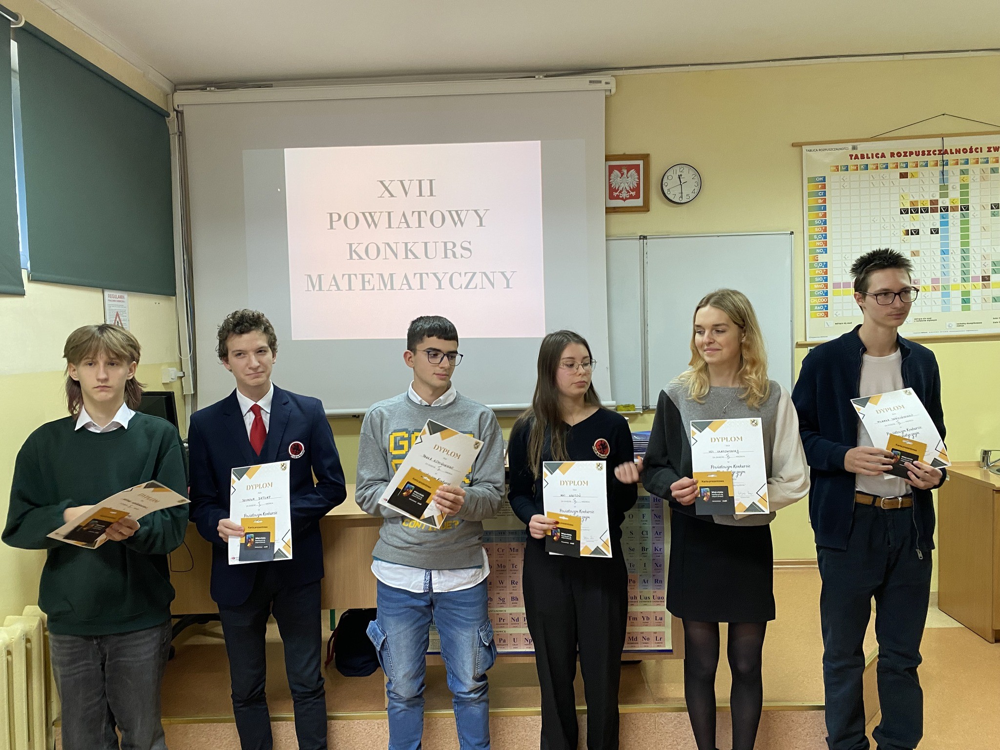 W dniu 29.11.24 odbył się XVII Powiatowy Konkurs Matematyczny. Ogromne gratulacje dla uczniów naszej szkoły za bardzo wysokie wyniki : Szymon Detlaf, klasa 4b - I miejsce (kategoria klas IV) Maja Krztoń, klasa 2h - II miejsce (kategoria klas II) Michał Sekściński, klasa 3b - II miejsce (kategoria klas III).