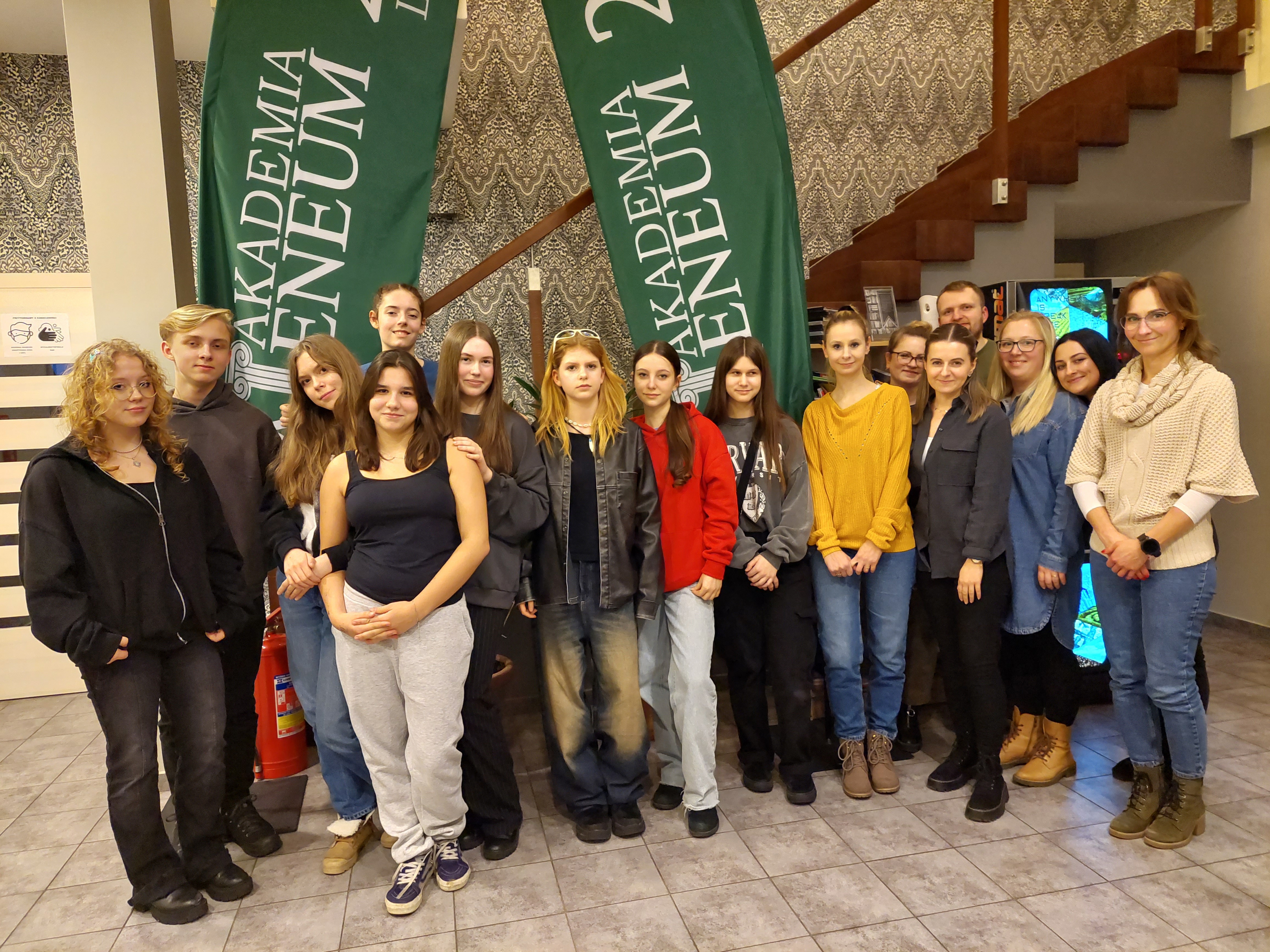 Kolejne przedsięwzięcie w ramach współpracy naszej szkoły z Akademią Ateneum w Gdańsku W niedzielę 14 stycznia w godzinach popołudniowych grupa naszych uczniów z klasy Id (klasa dwujęzyczna) miała wyjątkową okazję uczestniczenia w zajęciach na terenie Akademii Ateneum w Gdańsku. Zajęcia przeprowadzone były przez studentów V roku germanistyki i dotyczyły tematyki przebiegu dnia powszedniego oraz zawodów. Uczniowie mieli również okazję bliżej poznać Akademię Ateneum – miejsce, które może stanowić ich przyszłą drogę w edukacyjnej podróży. Cieszymy się, że zaproponowana przez nas forma zdobywania wiedzy spotkała się z dużym zainteresowaniem uczniów, o czym mogą świadczyć ich wypowiedzi. Oto kilka z nich: ”Moje wrażenia po zajęciach jak i po zobaczeniu uczelni są bardzo pozytywne. Same zajęcia poprowadzone były na dwa różne sposoby, ale zarówno te pierwsze poprowadzone w sposób bardziej tradycyjny jak i te drugie bardziej interaktywne, były bardzo ciekawe i dużo z nich wyniosłem. Uczelnia również wywarła na mnie duże wrażenie i gdybym w przyszłości zastanawiał się nad wyborem szkoły wyższej to na pewno wziąłbym ją pod uwagę.” (Szymon) „Wyjście na uczelnię mi się podobało. Nie było ono męczące, czy wymagające, a jednak nauczyliśmy się czegoś nowego. Zupełnie jakby luźniejsza lekcja niemieckiego. Chętnie pojadę tam znowu, gdy nadarzy się taka okazja.” (Paulina) „Przyjemna atmosfera, bardzo miło spędzony czas interesujące zabawy. Wyjście samo w sobie było świetne i bardzo mi się podobało.” (Zuza) Serdecznie dziękujemy studentom germanistyki za zaangażowanie podczas prowadzenia zajęć oraz uczniom za entuzjazm i czas poświęcony w niedzielę. Mamy nadzieję, że kolejne przedsięwzięcia związane z naszą współpracą przyniosą równie pozytywne efekty.