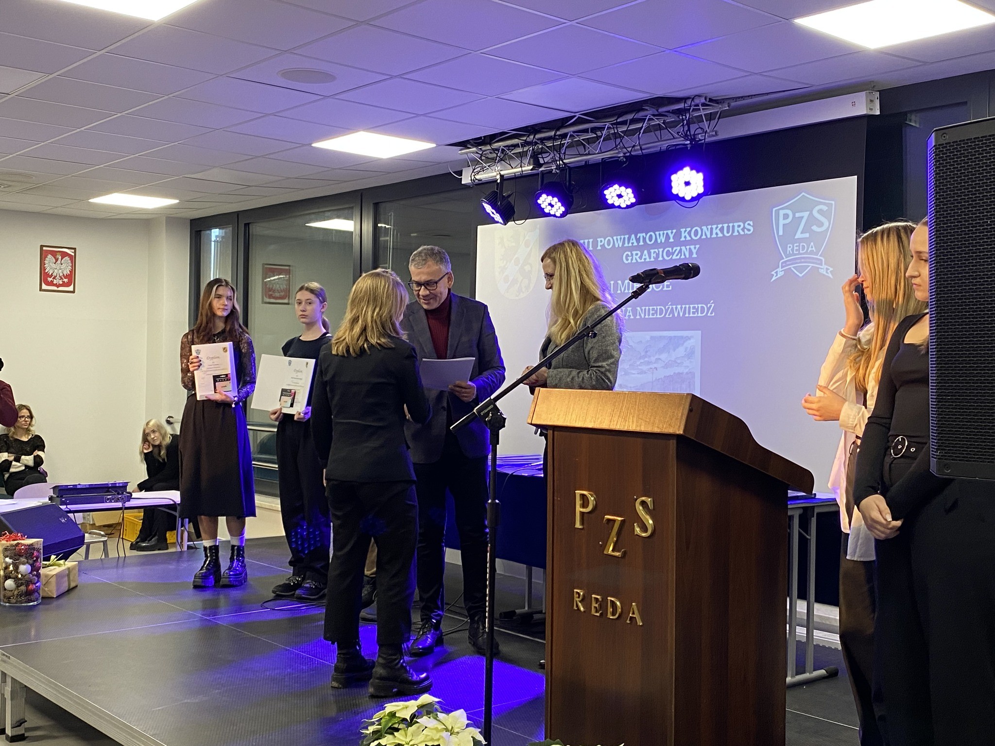 18 grudnia w Powiatowym Zespole Szkół w Redzie odbyła się uroczysta gala finałowa III Powiatowego Konkursu Graficznego "Człowiek a środowisko". Tematem przewodnim była ochrona środowiska oraz związane z nią działania ekologiczne prowadzone przez człowieka. Zadaniem uczniów było przygotowanie pracy graficznej wybraną techniką. Rysunek uczennicy klasy IIIa Natalii Niedźwiedź zdobył I miejsce.