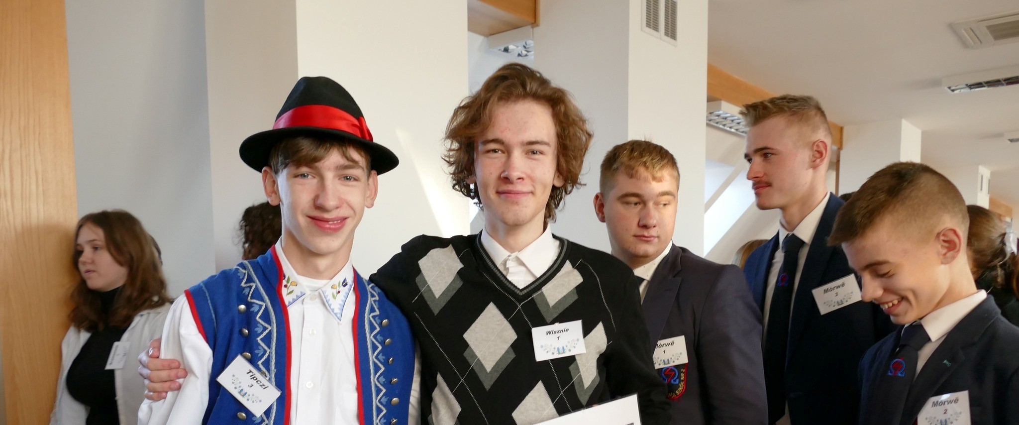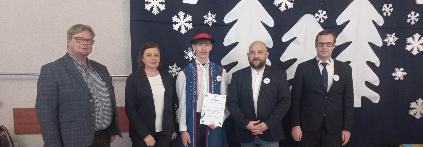 VI Wojewódzka Olimpiada Wiedzy o Kaszubach i Pomorzu im. Jerzego Hoppego. Współorganizatorzy – Starostwo Powiatowe w Wejherowie, Muzeum Piśmiennictwa i Muzyki Kaszubsko-Pomorskiej w Wejherowie, Powiatowy Zespół Szkół nr w Rumi Finał Olimpiady odbył się 5 grudnia 2023 r. w siedzibie PZS nr 1 w Rumi – I Liceum Ogólnokształcące im. Książąt Pomorskich przy ul. Starowiejskiej w Rumi. W VI edycji konkursu wzięło udział dziesięć 3-osobowych zespołów z liceów naszego regionu. Z przyjemnością powitaliśmy uczniów i opiekunów z I Lo w Kartuzach, I LO w Kościerzynie, PZS nr 1 w Kościerzynie, I LO w Lęborku, PZS nr 1 w Wejherowie, PZS nr 2 w Wejherowie, PZS nr 3 w Wejherowie, PZS nr 4 w Wejherowie oraz PZS nr 2 w Rumi. Konkurs składał się z dwóch etapów. Pierwszym był rozwiązywany indywidualnie przez każdego uczestnika test ze znajomości kultury, historii, tradycji Kaszub. W drugiej części drużyny miały do wykonania dwa zadania. Pierwsze to przetłumaczenie z języka kaszubskiego na polski oraz recytacja wiersza Macieja Dorau pt. Przemijanie. Drugie – zaprojektowanie 1-dniowej wycieczki turystyczno-krajoznawczej po Kaszubach dla grupy licealistów z głębi Polski oraz zilustrowanie projektu za pomocą plakatu. Wszystkie drużyny wspaniale wywiązały się ze swoich zadań dostarczając zaproszonym gościom oraz jurorom przyjemnych wrażeń ekspresyjną recytacją przetłumaczonego wiersza oraz wykazując się dużym zmysłem organizacyjnym i znajomością swojej Małej Ojczyzny podczas prezentacji wycieczek. Ostatecznie, po podsumowaniu wszystkich wyników cząstkowych końcowa klasyfikacja wyglądała następująco: I miejsce – zespół z PZS nr 1 w Rumi w składzie Marcelina Malotki, Natalia Mączka, Franciszek Wandtke pod opieką Grażyny Górak II miejsce – zespół z I Liceum Ogólnokształcącego Kościerzynie w składzie Bartosz Kerlin, Cyprian Pazda, Szczepan Makurat pod opieką Iwony Makurat III miejsce – zespół z PZS nr 4 w Wejherowie w składzie Sebastian Ceynowa, Weronika Kos, Dominika Nowicka I miejsce indywidualne za test – Franciszek Wandtke z PZS nr 1 w Rumi II miejsce indywidualne za test – Monika Wenta z I Lo w Kartuzach Wyróżnienia za recytację i posługiwanie się piękną kaszubszczyzną otrzymali: Fabian Okrój z PZS nr 2 w Wejherowie, Antonina Orłowska z PZS nr 1 w Wejherowie oraz Szczepan Makurat z I LO w Kościerzynie. Zmagania uczestników oceniało szanowne Jury w składzie: Mateusz Szuba - przewodniczący i Beata Humeniuk-Czech (pracownicy naukowi Muzeum Piśmiennictwa i Muzyki Kaszubsko-Pomorskiej w Wejherowie) oraz Wojciech Miotke (działacz rumskiego oddziału ZKP, znawca i pasjonat Kaszub). Swoją obecnością zaszczycili nas również zacni goście, a wśród Nich: Dr Michał Hinc - Dyrektor Muzeum Piśmiennictwa i Muzyki Kaszubsko-Pomorskiej w Wejherowie, Jacek Thiel - Wicestarosta Wejherowski, Józef Lanc - Prezes zarządu ZKP oddział w Rumi, Elżbieta Hoppe - małżonka patrona Olimpiady pana Jerzego Hoppego, Krystyna Wolf - członek zarządu ZKP oddział w Rumi, Łucja Słowikowska - radna VI kadencji Rady Powiatu Wejherowskiego, miłośniczka młodzieży i Kaszub.