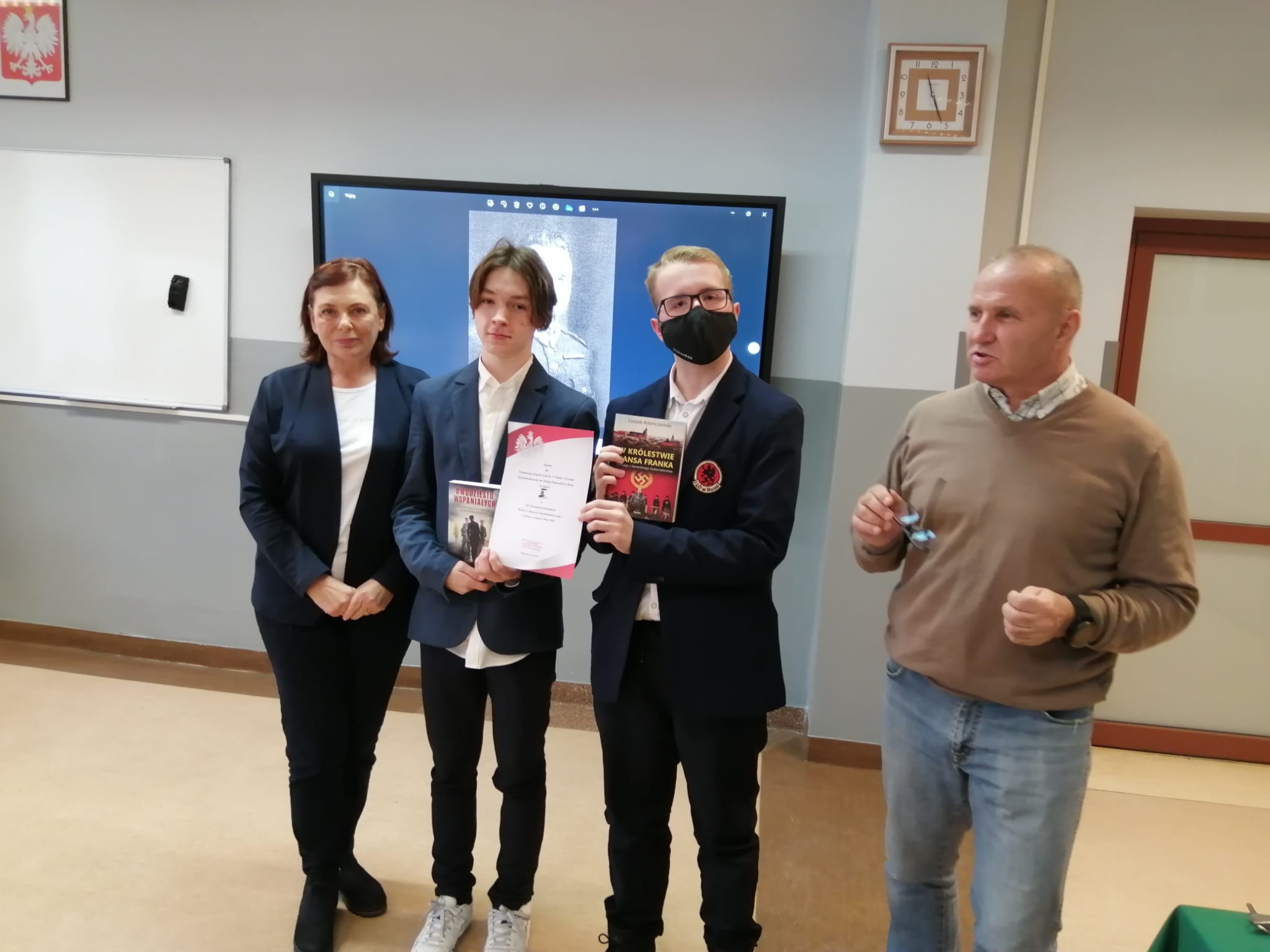 Powiatowy Konkurs Wiedzy o Opozycji Antykomunistycznej 1944 - 1989 15 grudnia 2023 roku w Powiatowym Zespole Szkół nr 4 im. Jakuba Wejhera w Wejherowie, odbył się XII Powiatowy Konkurs Wiedzy o Opozycji Antykomunistycznej w Polsce w latach 1944-1989. Naszą szkołę reprezentowali: Tomasz Nowak z klasy III b i Kacper Joksz z klasy III e. Konkurs składał się z dwóch części. W części pierwszej uczniowie wypełniali test obejmujący zakres wiedzy z historii Polski w latach 1944-1989. W drugim etapie konkursu uczniowie na podstawie fragmentów filmów dokumentalnych, rozmów, zdjęć postaci i miejsc, musieli określić wydarzenia związane z okresem PRL-u. Nasi uczniowie w tych zmaganiach zajęli II miejsce. 1944 - 1989 15 grudnia 2023 roku w Powiatowym Zespole Szkół nr 4 im. Jakuba Wejhera w Wejherowie, odbył się XII Powiatowy Konkurs Wiedzy o Opozycji Antykomunistycznej w Polsce w latach 1944-1989. Naszą szkołę reprezentowali: Tomasz Nowak z klasy III b i Kacper Joksz z klasy III e. Konkurs składał się z dwóch części. W części pierwszej uczniowie wypełniali test obejmujący zakres wiedzy z historii Polski w latach 1944-1989. W drugim etapie konkursu uczniowie na podstawie fragmentów filmów dokumentalnych, rozmów, zdjęć postaci i miejsc, musieli określić wydarzenia związane z okresem PRL-u. Nasi uczniowie w tych zmaganiach zajęli II miejsce. 1944 - 1989 15 grudnia 2023 roku w Powiatowym Zespole Szkół nr 4 im. Jakuba Wejhera w Wejherowie, odbył się XII Powiatowy Konkurs Wiedzy o Opozycji Antykomunistycznej w Polsce w latach 1944-1989. Naszą szkołę reprezentowali: Tomasz Nowak z klasy III b i Kacper Joksz z klasy III e. Konkurs składał się z dwóch części. W części pierwszej uczniowie wypełniali test obejmujący zakres wiedzy z historii Polski w latach 1944-1989. W drugim etapie konkursu uczniowie na podstawie fragmentów filmów dokumentalnych, rozmów, zdjęć postaci i miejsc, musieli określić wydarzenia związane z okresem PRL-u. Nasi uczniowie w tych zmaganiach zajęli II miejsce.