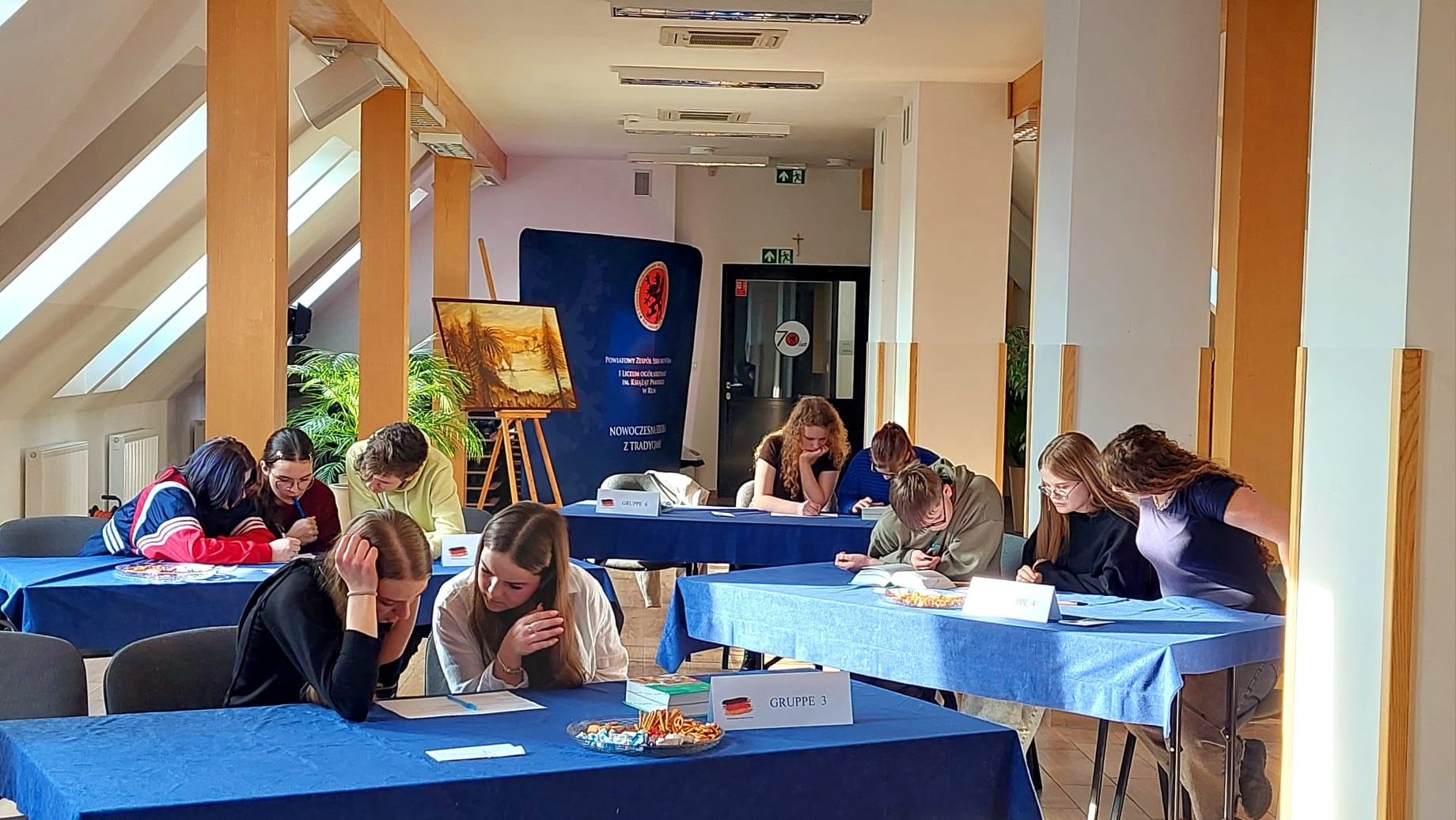 W piątek, 27 lutego, w naszej szkole odbyła się druga edycja konkursu „Mistrzowie niemieckiego języka potocznego”. Był on skierowany do uczniów naszej szkoły. Do rywalizacji przystąpiło sześć zespołów. Uczniowie przygotowywali się do tego wydarzenia od listopada, systematycznie poznając i utrwalając potoczne wyrażenia używane w naturalnych sytuacjach komunikacyjnych. Podczas konkursu uczestnicy zmierzyli się z zadaniami, które przyjęły formę zabawy. Pojawiły się m.in. krzyżówka, trimino oraz inne aktywności zespołowe sprawdzające znajomość poznanych zwrotów. W finałowej części uczniowie zaprezentowali wcześniej przygotowane dialogi z użyciem potocznych wyrażeń. Oto wyniki konkursu: 1 miejsce – Zuzanna Kopacz, Palina Surzhenka i Paulina Zachary (3D) 2 miejsce – Aleksandra Krakowska, Zuzanna Kobiela (2C) 3 miejsce – Masha Grzesiak, Olaf Pawłowski, Zofia Słowik (1D) Wyróżnienie – Laura Nietupska, Amelia Werbicka (3C) Mamy nadzieję, że udział w konkursie był dla uczestników nie tylko sprawdzianem wiedzy, lecz także okazją do dobrej zabawy i praktycznego wykorzystania języka w sytuacjach bliskich codziennej komunikacji. Gratulujemy wszystkim uczniom i dziękujemy za zaangażowanie oraz bardzo dobry poziom przygotowania.