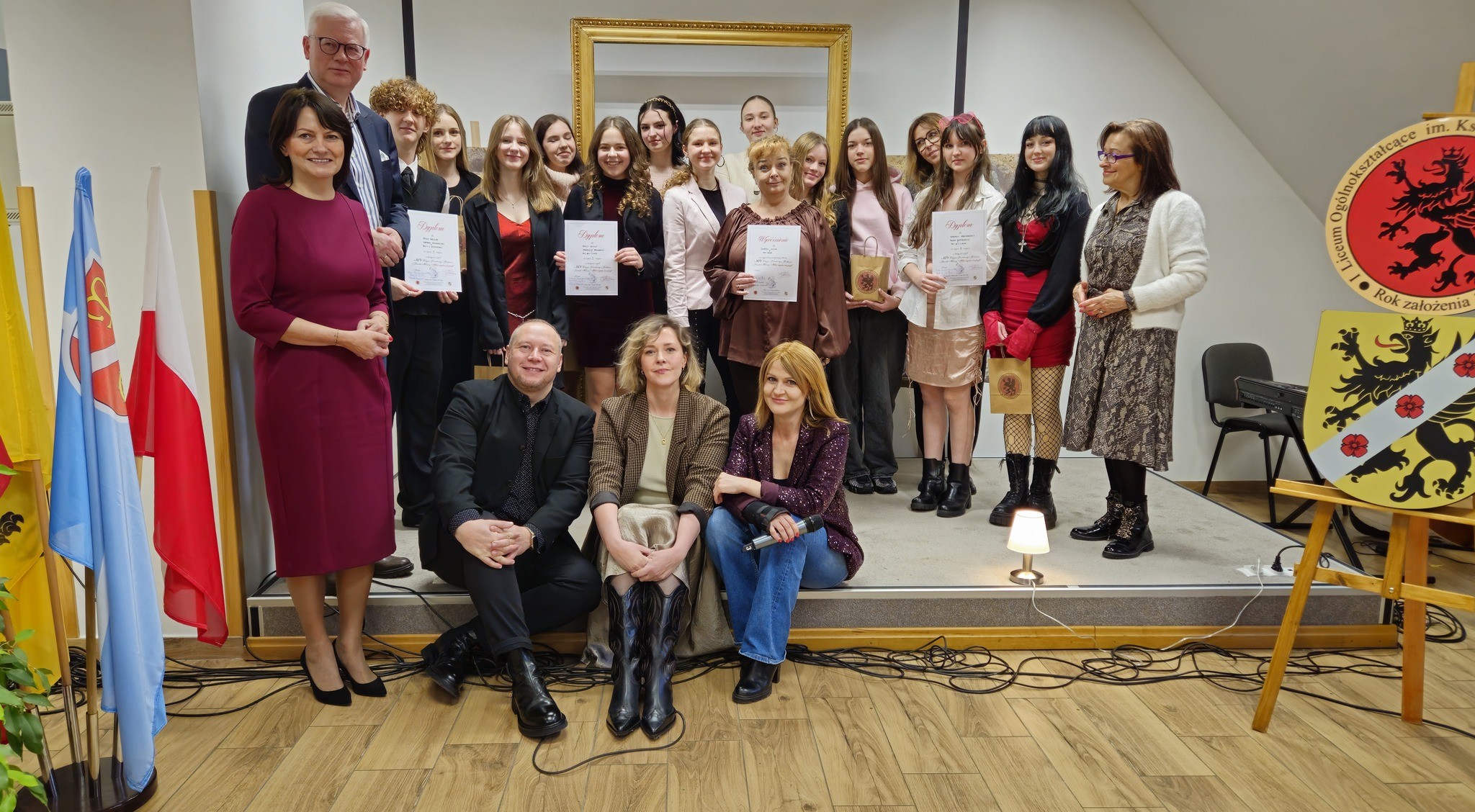 W piątek, 13 lutego, w naszej szkole odbyła się XIV edycja Konkursu Piosenki Miłosnej "Miłość niejeden zna język". To wyjątkowe wydarzenie na stałe wpisało się w kalendarz szkolnych uroczystości i po raz kolejny pokazało, jak wiele talentów wokół nas – i jak pięknie muzyka potrafi łączyć ludzi ponad językami i granicami. Uczestników przywitała Pani Dyrektor mgr Lucyna Penkowska. W konkursie wystąpili uczestnicy w dwóch kategoriach: solista oraz zespół. Na scenie zaprezentowało się aż 17 solistów oraz 4 zespoły. Każdy wykonawca przygotował dwa utwory w różnych językach, co dodatkowo podniosło poziom artystyczny i różnorodność repertuaru. Kategoria – Solista Wyróżnienie: Anna Maria Falkowska – PZS nr 1 w Redzie III miejsce: Laura Lewińska – PZS nr 4 w Wejherowie II miejsce: Laura Rutkowska – PZS nr 1 w Wejherowie I miejsce: Kornelia Krajnowska – PZS nr 1 w Rumi Kategoria – Zespół Wyróżnienie: Zespół Wilga – PZS nr 1 w Redzie III miejsce: Kornelia Krajnowska i Milena Szymerowska – PZS nr 1 w Rumi II miejsce: Oliwia Noculak i Natan Wałdowski – PZS nr 1 w Wejherowie I miejsce: Magdalena Pawłowska i Amelia Dziewit – PZS nr 1 w Rumi Serdecznie gratulujemy wszystkim uczestnikom odwagi, talentu i ogromnego zaangażowania. Dziękujemy również opiekunom za przygotowanie młodzieży oraz wszystkim, którzy współtworzyli to piękne muzyczne święto. Nagrody dla uczestników ufundował Starosta Wejherowski, a samą galę uświetniła obecność wicestarosty Witolda Reclafa - oraz Ewy Pasiecznej - radnej powiatu wejherowskiego.