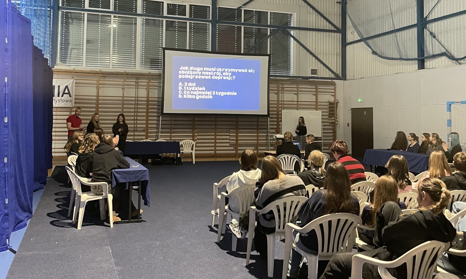 W ramach kampanii społecznej Real Talk, realizowanej w Ogólnopolskiej Olimpiadzie Zwolnieni z Teorii, przedstawiciele Samorządu Uczniowskiego zorganizowali wyjątkowe wydarzenie z okazji Ogólnopolskiego Dnia Walki z Depresją. Było to spotkanie pełne wiedzy, uważności i – co najważniejsze – prawdziwej rozmowy. Uczniowie przygotowali merytoryczną prezentację oraz wykład poświęcony depresji – chorobie, która wciąż bywa niezrozumiana i zbyt często pozostaje tematem tabu. W przystępny, a jednocześnie rzetelny sposób przybliżyli jej objawy, przyczyny oraz możliwości wsparcia i leczenia. Nie zabrakło także interaktywnych elementów – uczestnicy mogli sprawdzić swoją wiedzę w quizie online, a reprezentacje klas 1a, 2c i 3f zmierzyły się w quizie wiedzy na temat depresji. Zwycięzcy quizu online otrzymali słodkie upominki, natomiast zwycięska reprezentacja klasy 2c została nagrodzona nagrodą pieniężną. Jednak najważniejsze wydarzyło się między slajdami i pytaniami konkursowymi. Była przestrzeń na rozmowę, refleksję i zadawanie pytań. Kilka odważnych osób podzieliło się swoimi osobistymi doświadczeniami związanymi z depresją. Te świadectwa wniosły do spotkania coś więcej niż wiedzę – wniosły autentyczność i empatię. W tych momentach można było poczuć, że Real Talk to nie tylko nazwa projektu, ale realna zmiana w sposobie, w jaki rozmawiamy o zdrowiu psychicznym. Projekt Real Talk powstał z potrzeby serca i odpowiedzialności. W jego skład wchodzi siedmioro uczniów klas trzecich: Kaja Koriat-Kreft, Paulina Derc, Hanna Tobolska, Nina Zajdler, Natasza Hetmańczyk, Natalia Karkowska oraz Maksymilian Kłosin. Jego celem jest zwiększanie świadomości na temat depresji oraz zachęcanie do otwartej, szczerej rozmowy – takiej, która przełamuje milczenie i pokazuje, że proszenie o pomoc jest oznaką siły, nie słabości. Dzisiejsze wydarzenie spotkało się z dużym zainteresowaniem i zaangażowaniem uczniów. Było dowodem na to, że młodzi ludzie chcą rozmawiać o sprawach ważnych, wspierać się nawzajem i budować szkołę jako przestrzeń bezpieczeństwa i zrozumienia. Tego dnia wiedza połączyła się z wrażliwością, a rozmowa – z odwagą. I właśnie w tym połączeniu kryje się mała, ale bardzo potrzebna magia zmiany. Zwolnieni z Teorii