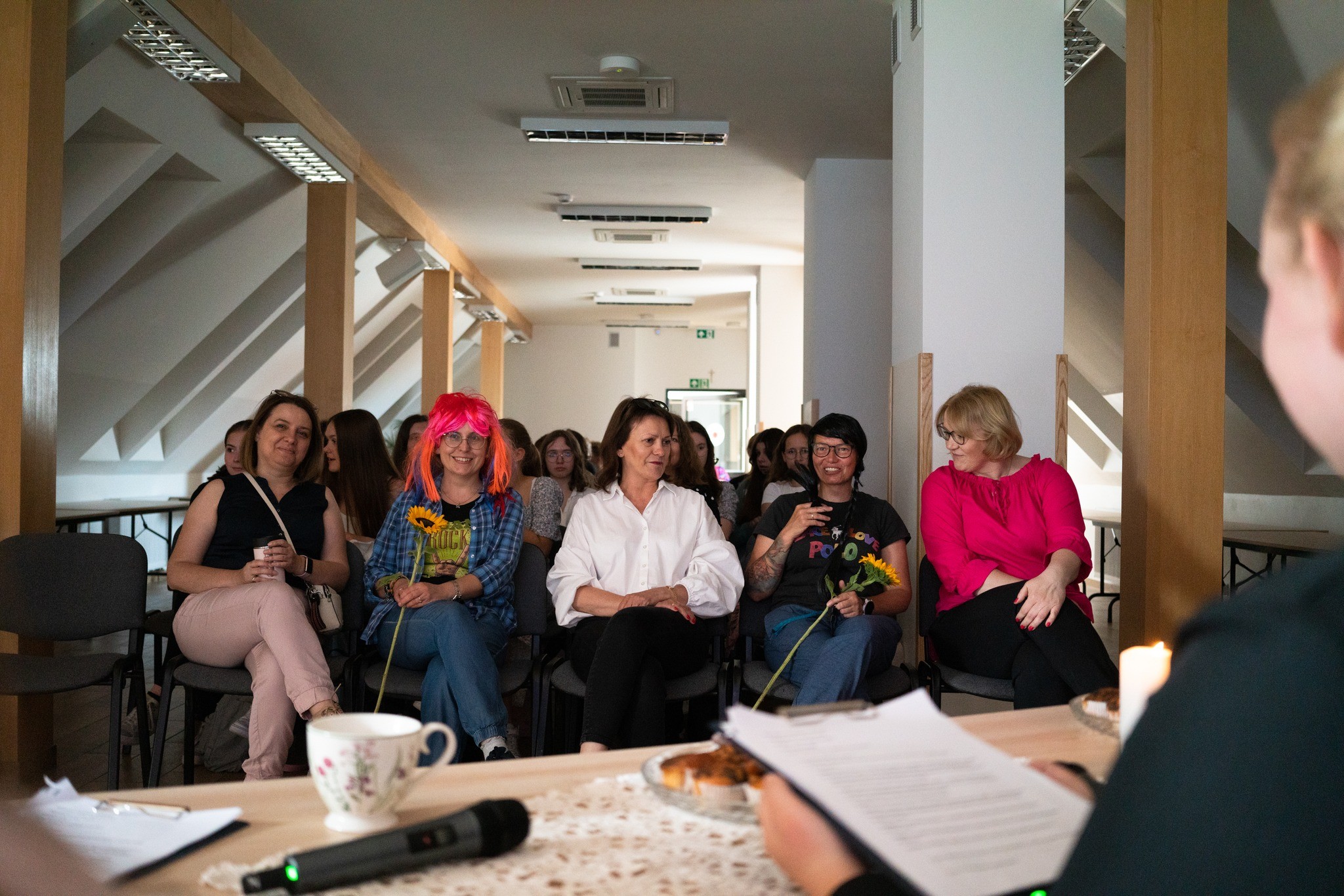 1 czerwca chętni uczniowie oraz nauczyciele zgromadzili się w Sali 411 na spotkaniu autorskim Nikaliny Starykavej z klasy 1a. Można było nie tylko obejrzeć wspaniałe prace Nikaliny, ale również posłuchać fragmentu jej książki w języku polskim i rosyjskim oraz zabrać do domu pamiątkowe pocztówki przedstawiające obrazy artystki. Autorka prac zebrała mnóstwo oklasków i kwiaty. Oprawę spotkania przygotowała klasa 1a, uświetniając wystawę występami wokalnymi i instrumentalnymi. Wystawie Nikaliny towarzyszyła imponująca ekspozycja prac Izabeli Ploc, również uczennicy klasy 1a . Wielkie brawa dla naszych artystek oraz klasy 1a!