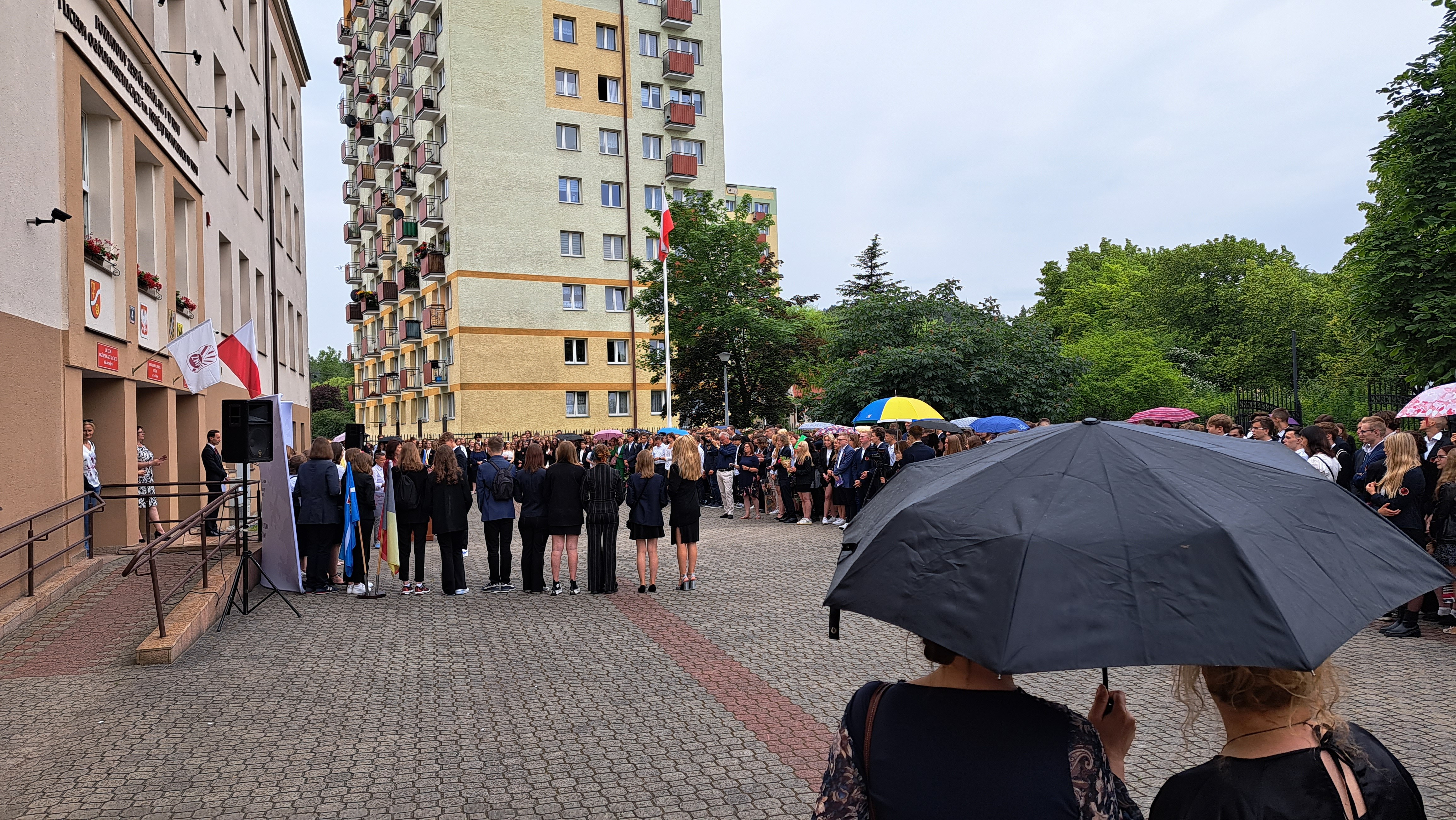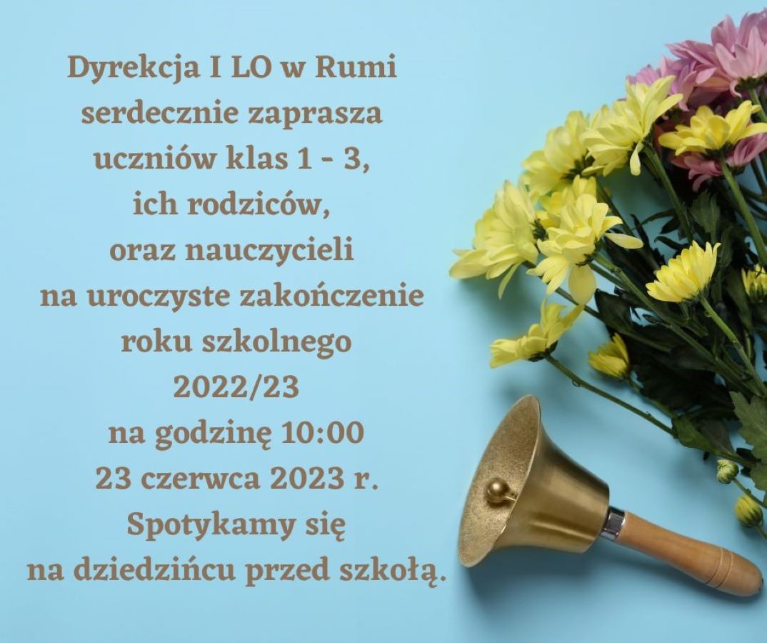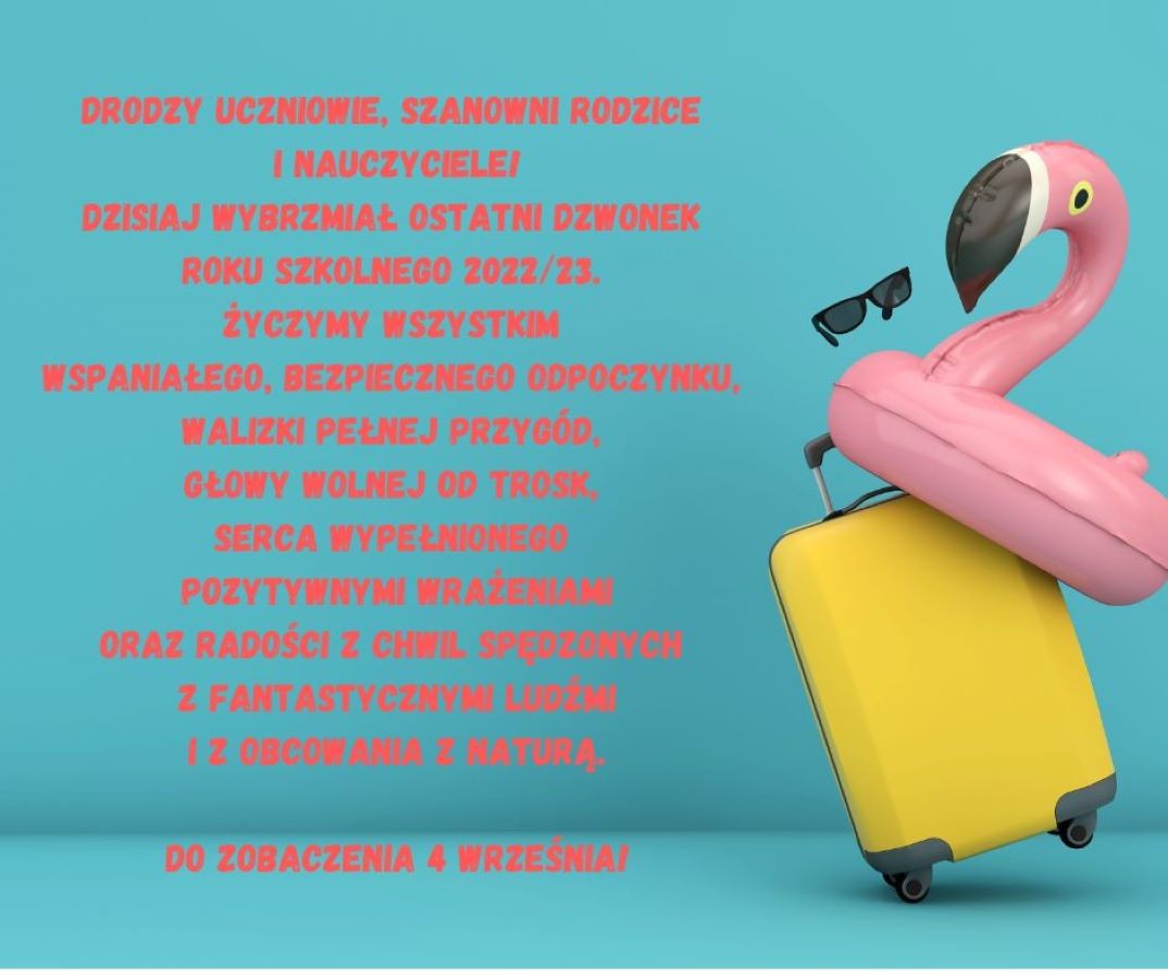 W piątek, 23 czerwca 2023 r. o godzinie 10.00 ostatni w tym roku szkolnym dzwonek wezwał całą społeczność szkolną na dziedziniec, aby wspólnie zakończyć rok szkolny 2022/2023. Uroczystość rozpoczęła się od wspólnego odśpiewania hymnu państwowego, po którym nastąpiło przekazanie sztandaru szkoły przez uczniów klasy II a nowemu pocztowi sztandarowemu reprezentowanemu przez uczniów tegorocznych klas pierwszych. Następnie głos zabrała Pani Dyrektor, Lucyna Penkowska, podsumowując miniony rok szkolny i gratulując tym, którzy uzyskali najwyższe średnie oraz dziękując wszystkim, którzy aktywnie angażowali się w życie szkoły. Pani Wicedyrektor Tatiana Łapińska zaprosiła kolejno uczniów klas I, II i III, którzy uzyskali najwyższe średnie, aby odebrali zasłużone nagrody oraz uścisk ręki Pani Dyrektor oraz przedstawicielki Rady Rodziców - fundatora wszystkich nagród. Z kolei Pani Wicedyrektor Aleksandra Tramer zaprosiła tych uczniów, którzy zasłużyli się innymi aktywnościami i osiągnieciami, aby ich również nagrodzić. Wszyscy wyróżnieni uczniowie wraz z wychowawcami, Dyrekcją oraz przewodniczącą Rady Rodziców zostali uwiecznieni przez fotografów oraz przedstawicieli szkolnej TeLOwizji. Choć nad nami rozpościerały się ciemne chmury zwiastujące deszcz, to udało się nam szczęśliwie dotrwać do końca uroczystości na dziedzińcu, a następnie poszczególne klasy udały się wraz z wychowawcami do sal lekcyjnych, gdzie wręczone zostały świadectwa. Życzymy wszystkim udanych i bezpiecznych wakacji, rozsądnego korzystania z kąpieli wodnych i słonecznych, niezapomnianych przygód, odwiedzenia pięknych miejsc i zawarcia nowych wartościowych znajomości. Do zobaczenia we wrześniu!