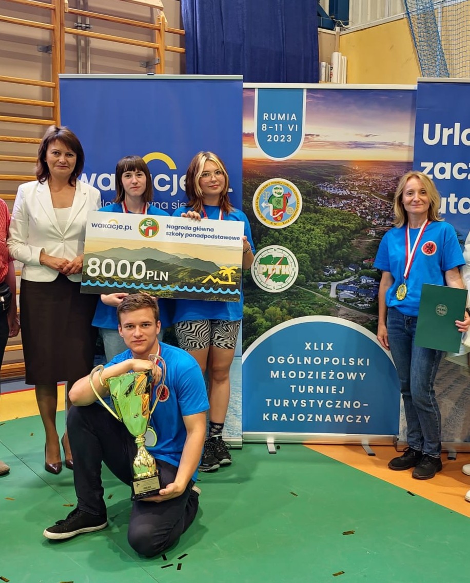 NAJLEPSI W POLSCE Od czwartku do niedzieli (8-11 czerwca 2023r.) na terenie naszej szkoły gościliśmy finalistów Ogólnopolskiego Młodzieżowego Turnieju Turystyczno-Krajoznawczego PTTK. Uczestnicy tego arcytrudnego konkursu musieli wykazać się wiedzą krajoznawczą, topograficzną, turystyczną, udzielania pierwszej pomocy oraz bezpieczeństwem w ruchu drogowym. Na część praktyczną składał się turystyczny marsz na orientację, rowerowy tor przeszkód, umiejętność udzielania pierwszej pomocy i korzystania z zawartości apteczki podczas wypadku na szlaku oraz turystyczne ABC, w ramach którego zorganizowano pomiary terenowe, kajakowy tor przeszkód, konkurencję kaszubską oraz "piękno Polski w tekstach kultury". Tak ogromna ilość konkurencji turniejowych nie była przeszkodą do osiągnięcia tak spektakularnego rezultatu. Drużyna 1 Liceum Ogólnokształcącego im. Książąt Pomorskich w składzie: Hanna Węglewska, Kornelia Kielas i Mikołaj Stewa w XLIV Finale Centralnym Ogólnopolskiego Młodzieżowego Turnieju Turystyczno-Krajoznawczego zajęła I miejsce pokonując piętnaście zespołów z całej Polski. Na II miejscu stanęła drużyna z województwa dolnośląskiego, a następna lokata przypadła zespołowi z woj. mazowieckiego. Nasi uczniowie okazali się najlepsi z testu wiedzy zajmując odpowiednio 1, 3 i 6 miejsce w Polsce (Mikołaj, Hania i Kornelia), co dało im prowadzenie w konkursie. W części praktycznej potwierdzili swoją wysoką dyspozycję wygrywając rowerowy tor przeszkód. Mikołaj Stewa okazał się najlepszy w tej konkurencji. Za swój trud i czas poświęcony przygotowaniom do turnieju organizatorzy konkursu uhonorowali zwycięzców wyjątkowymi nagrodami. Serdecznie za to dziękujemy. Drużynę 1LO przygotowywała do konkursu Beata Nowak Gratulujemy laureatom i życzymy sukcesów w kolejnych edycjach OMTTK. https://www.facebook.com/watch/?v=1003937144101190