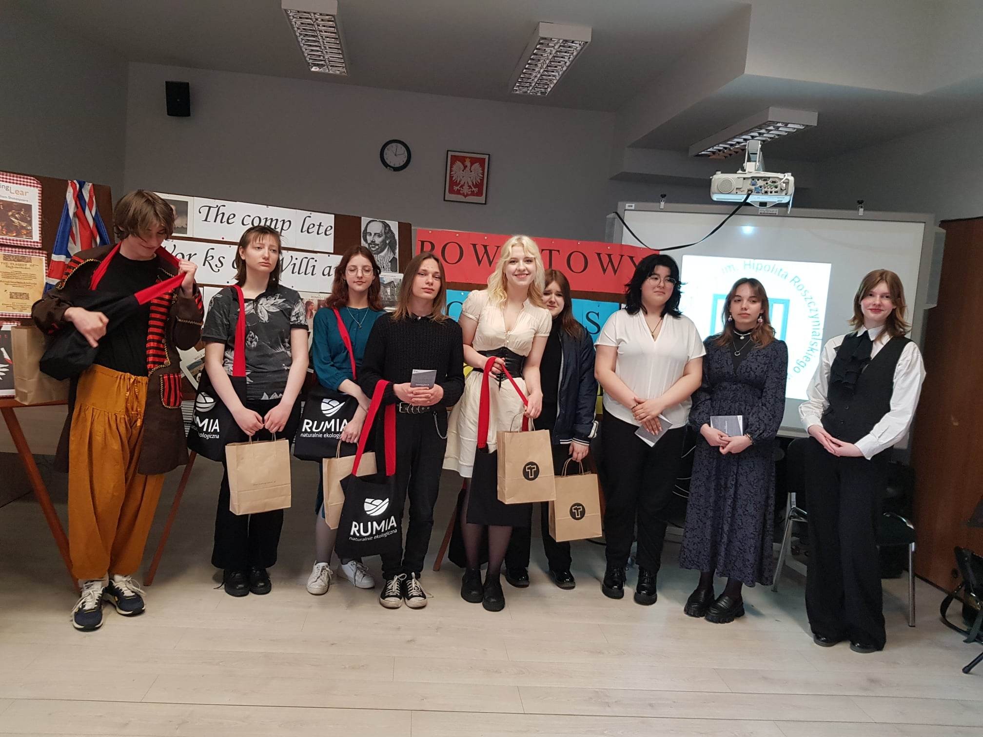 W dniu 27 kwietnia 2023r. odbył się I Powiatowy Konkurs Recytatorski pt. „Twórczość Williama Szekspira” zorganizowany przez PZS nr 2 w Rumi. Naszą szkołę reprezentowali: Laura Groenke z klasy 2d, Szymon Nierzwicki z klasy 2d oraz Anastazja Kulyk z klasy 2e. Każdy z uczniów zaprezentował jeden utwór Williama Szekspira w języku angielskim, wkładając w swoje wykonanie wiele ekspresji i emocji. Ostatecznie komisja konkursowa przyznała Laurze drugie miejsce, natomiast Szymon otrzymał specjalne wyróżnienie od przedstawiciela Gdańskiego Teatru Szekspirowskiego.
