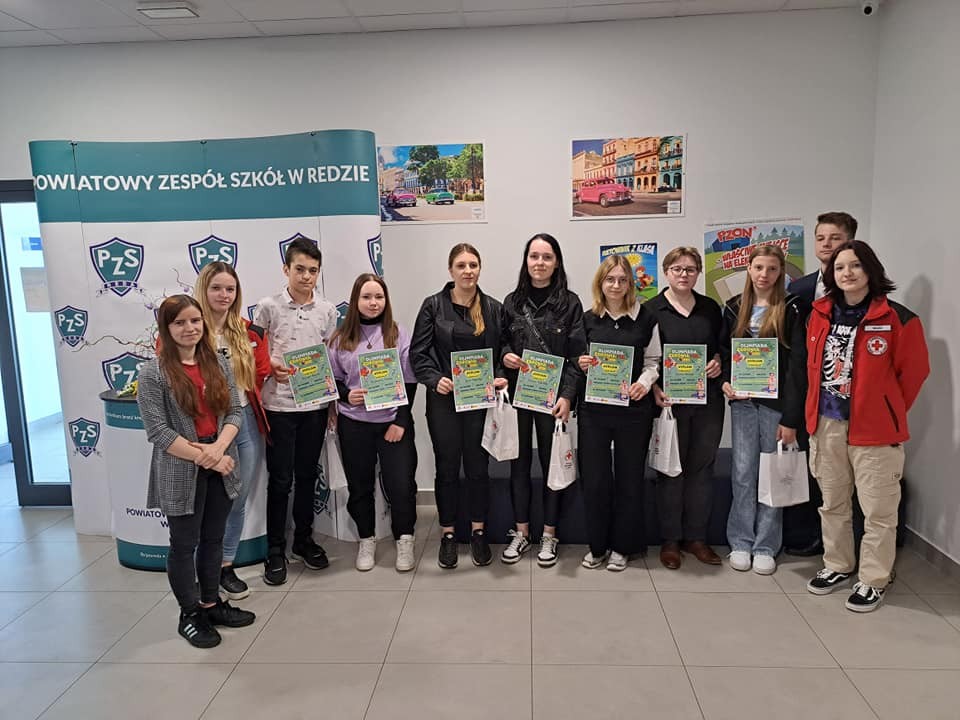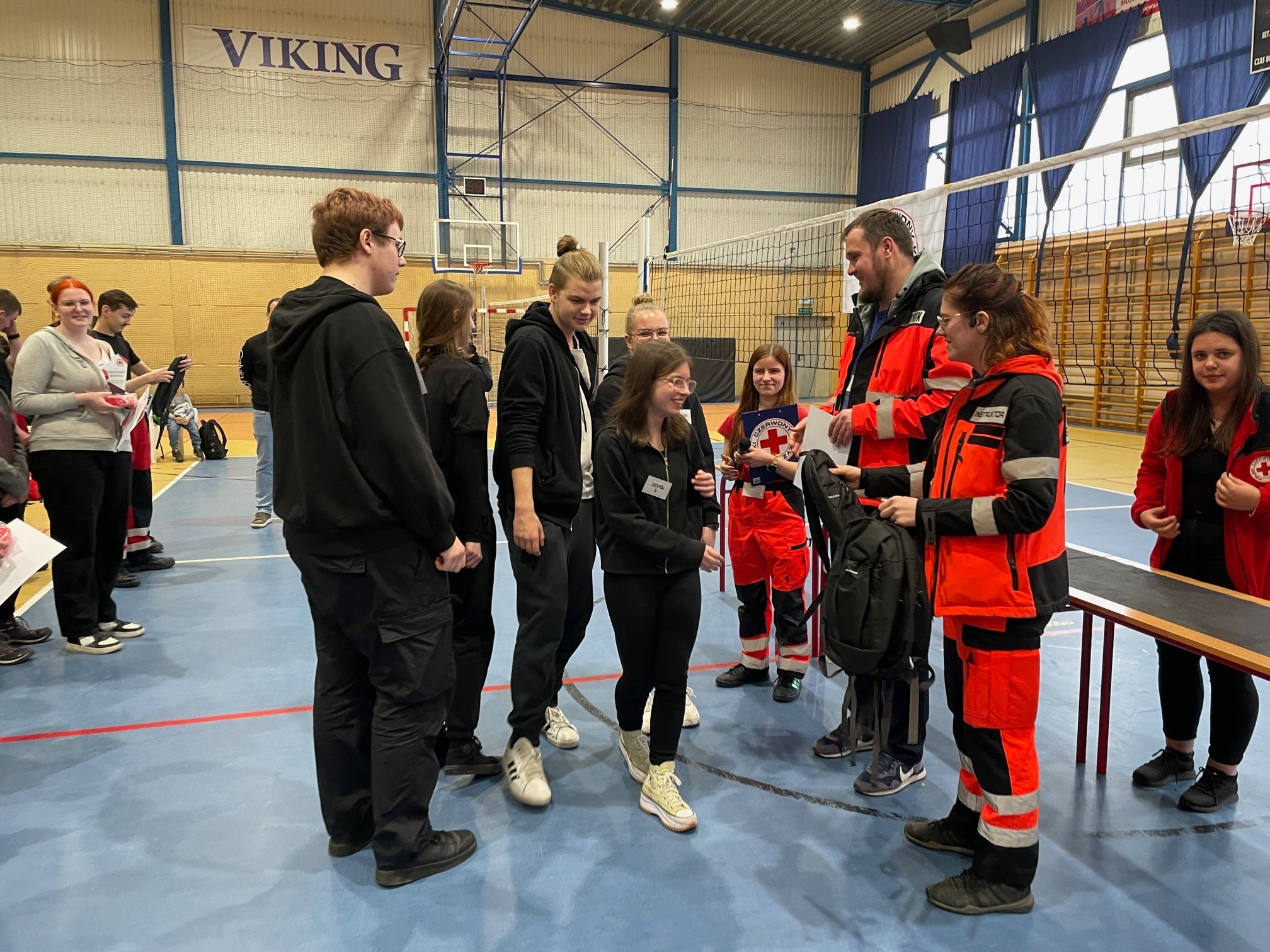Dnia 15 kwietnia 2023 r., w naszej szkole odbył się etap rejonowy Mistrzostw Pierwszej Pomocy Polskiego Czerwonego Krzyża. Uczniowie szkół ponadpodstawowych rywalizowali w pięcioosobowych zespołach, które musiały udzielić pierwszej pomocy poszkodowanym na 8 specjalnie przygotowanych stanowiskach. Każda scena wiernie odwzorowywała potencjalne urazy oraz zachowanie osób biorących udział w zdarzeniu. Były to pierwsze takie zawody, jakie zorganizowano po okresie pandemii. I LO w Rumi godnie reprezentowali: kapitan Aleksander Skrzypiec (1e), Antonina Chaber (1c), Maria Król (1c), Maja Matejczyk (1c) oraz Bartosz Grzelczyk (1c). Rywalizacja była wyrównana do samego końca, a o ostatecznym wyniku decydowały niewielkie różnice punktowe. Mistrzostwa wygrali ratownicy z PZS Reda. Zwycięzcom oraz wszystkim uczestnikom gratulujemy i życzymy dalszych sukcesów. Jednocześnie zapraszamy wszystkich chętnych do udziału w zajęciach Szkolnego Koła PCK. Zgłoszenia przyjmują p. Karolina Bladowska i p. Dawid Kasprzyk.