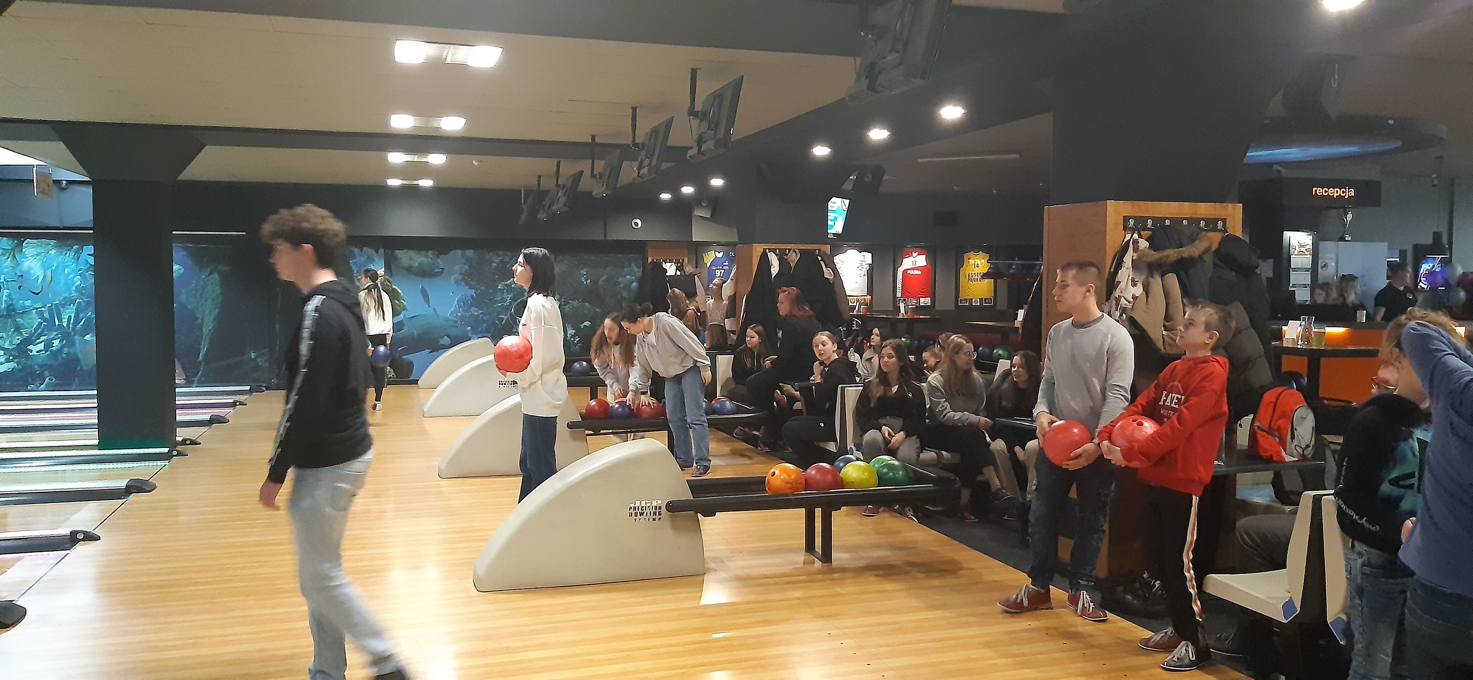 W ostatni piątek przed feriami klasa 1c wybrała się z wychowawczynią oraz z panem Dawidem Kasprzykiem do kręgielni Centrum U7 w Gdyni. Wyjście miało charakter integracyjny i było częścią nagrody zdobytej przez klasę w konkursie - Dzień Idola.
