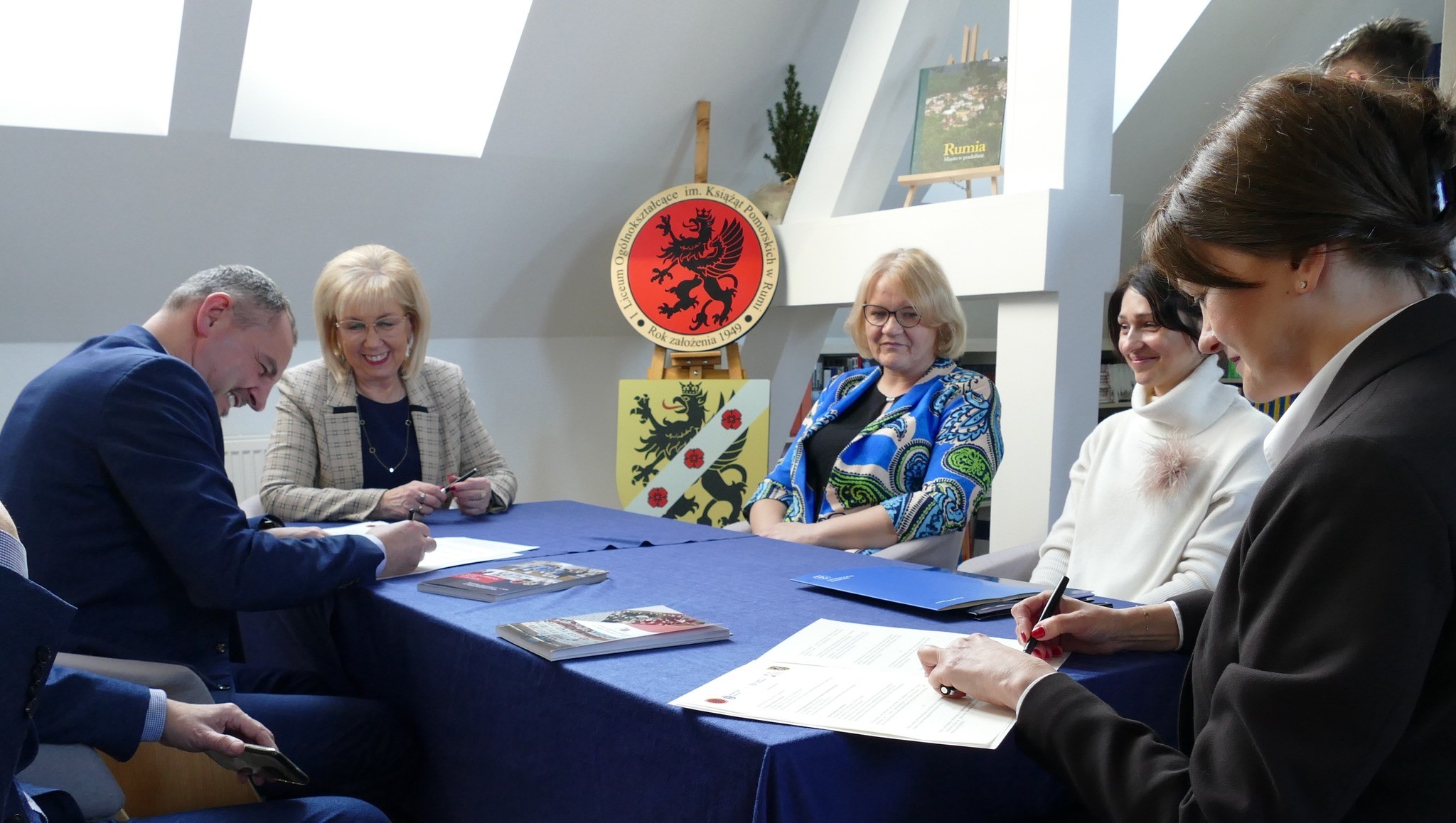 W dniu 8 lutego br. w siedzibie Szkoły odbyło się trójstronne spotkanie, podczas którego nastąpiła oficjalna inauguracja szeroko zakrojonej współpracy pomiędzy I LO im. Książąt Pomorskich w Rumi, jego organem prowadzącym – Powiatem Wejherowskim a Uniwersytetem Gdańskim. Na mocy zawartego porozumienia, klasy z rozszerzonym programem nauczania historii zostały objęte Patronatem Wydziału Historycznego Uniwersytetu Gdańskiego. Współpraca ma obejmować, m.in. uczestnictwo naszych uczniów w prelekcjach i wydarzeniach organizowanych przez Wydział Historyczny UG, objęcie przez Wydział Historyczny patronatem Olimpiady Kaszubskiej, wymianę doświadczeń i opinii między nauczycielami historii i pracownikami dydaktycznymi Wydziału Historycznego. Porozumienie zostało podpisane przez Starostę Powiatu Wejherowskiego panią dr Gabrielę Lisius, dyrektora szkoły panią mgr Lucynę Penkowską oraz Dziekana Wydziału Historycznego pana dr hab. Arkadiusza Janickiego. W spotkaniu uczestniczyli również dyrektor Instytutu Historii UG dr hab. Michał Kosznicki oraz nauczycielki historii pani mgr Mirosława Pałubicka i mgr Monika Młynarczykowska.