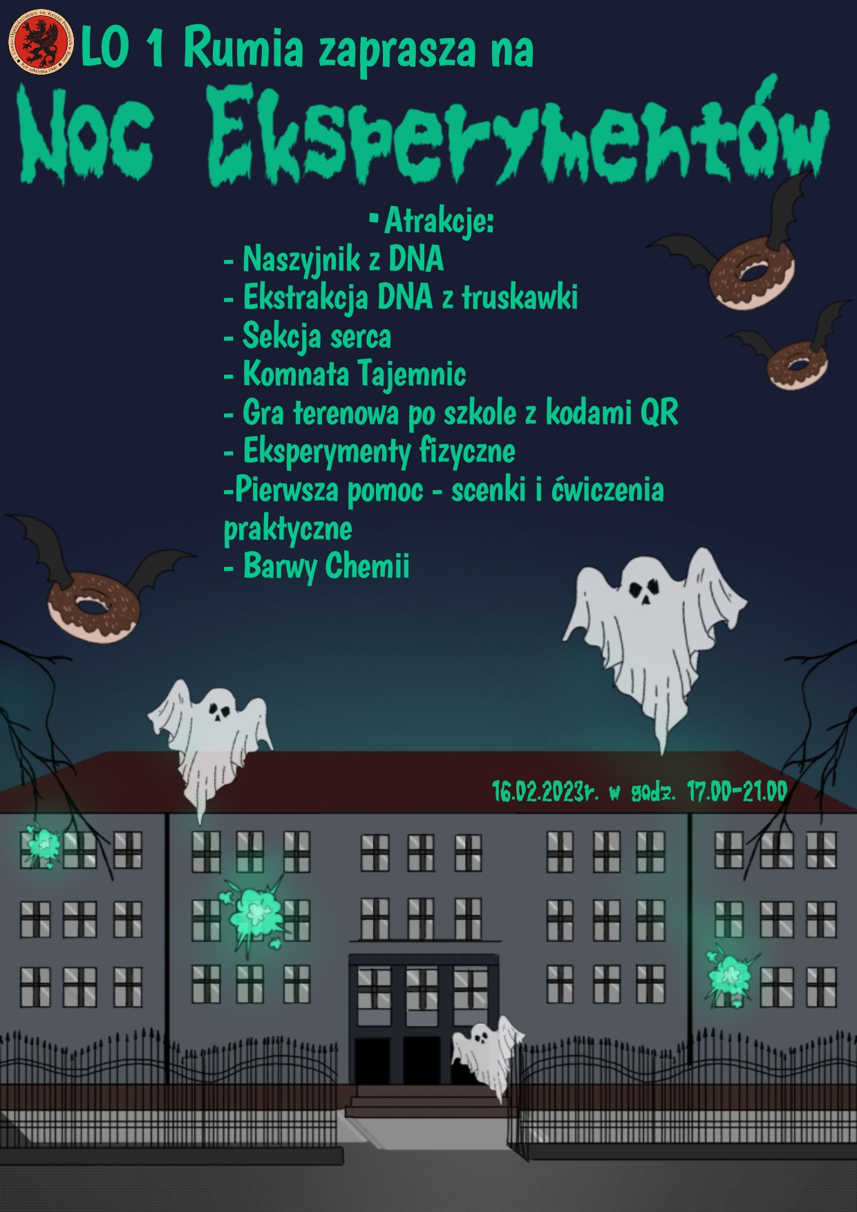 Za nami kolejna odsłona Nocy Eksperymentów. 16 lutego uczniowie klas siódmych i ósmych szkół podstawowych odwiedzili nas żeby wziąć udział w różnorodnych warsztatach przygotowanych przez nauczycieli i uczniów naszego liceum. Wśród licznych atrakcji znalazły się warsztaty z tworzenia naszyjnika z własnym DNA, ekstrakcji DNA z truskawki, sekcja serca, pokazy chemiczne, geograficzne i fizyczne jak również magiczne eksperymenty w Komnacie Tajemnic. Uczniowie mogli też się nauczyć podstaw pierwszej pomocy, wziąć udział w wykładach i grze terenowej prowadzonych przez naszych uczniów oraz matematycznym 1z10. Każdy z odwiedzających mógł się poczęstować świeżo przygotowanymi goframi a na tych którzy ukończyli grę terenową czekały pachnące pączki.