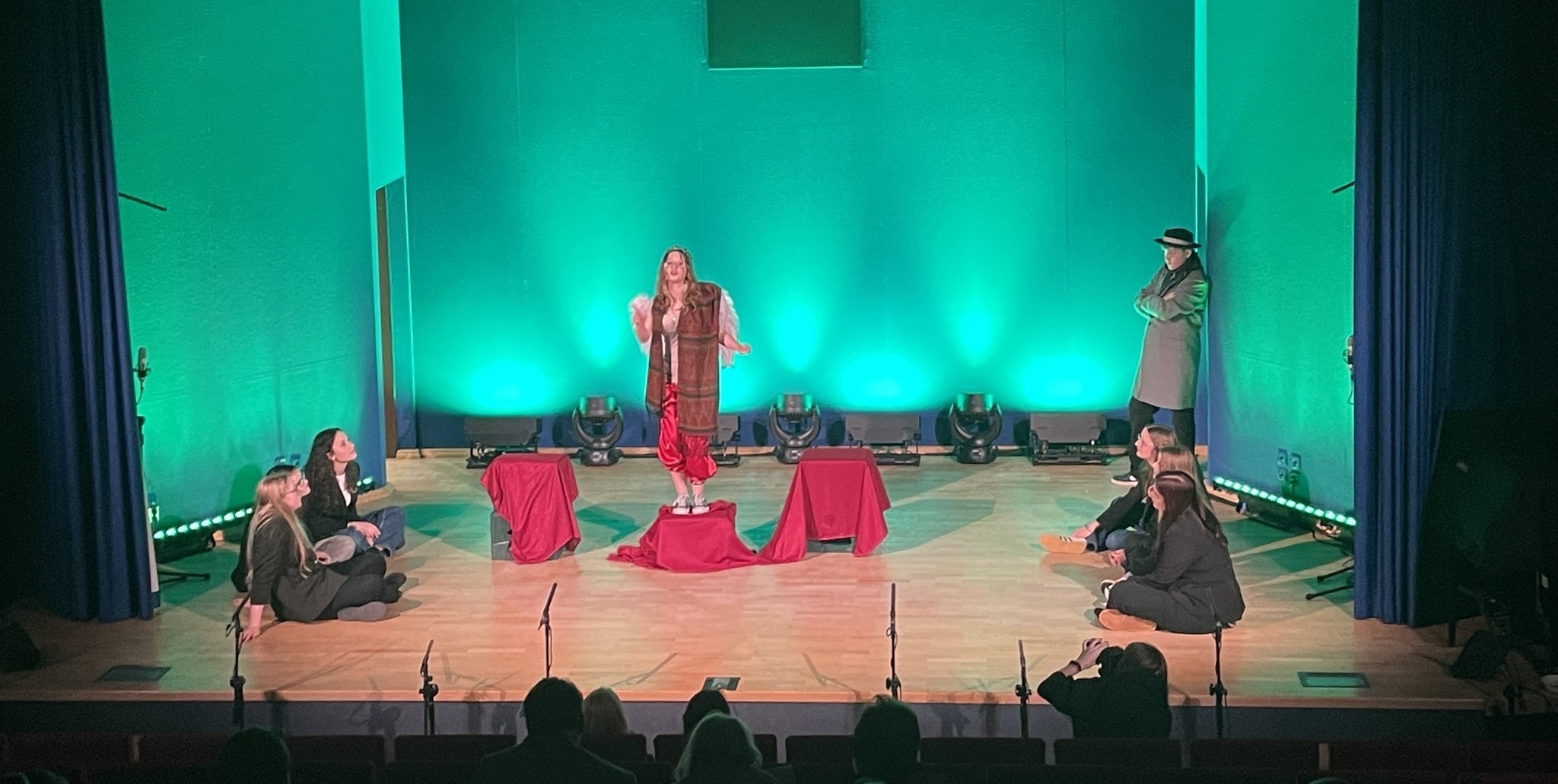 Ubiegły tydzień minął pod znakiem teatru. Szkolne koło teatralne wzięło udział w dwóch ogólnopolskich przeglądach teatralnycmh - w Przeglądzie Teatrów Amatorskich „Wieżowisko” w Gniewinie, na którym nasza uczennica Kasia Wróbel otrzymała wyróżnienie za kreację aktorską. Drugim wydarzeniem był Ogólnopolski Przegląd Małych Form Teatralnych „Luterek”, który odbył się w Filharmonii Kaszubskiej w Wejherowie. Tam też braliśmy udział w trzydniowych warsztatach m. in. z zakresu emisji głosu czy ruchu scenicznego. Nasza grupa przede wszystkim zdobyła cenne doświadczenie sceniczne, oglądając spektakle w różnych odsłonach estetycznych. To było prawdziwe święto teatru, uwieńczone wspólnym wyjściem do Teatru Muzycznego na adaptację „Mistrza i Małgorzaty” Bułhakowa.