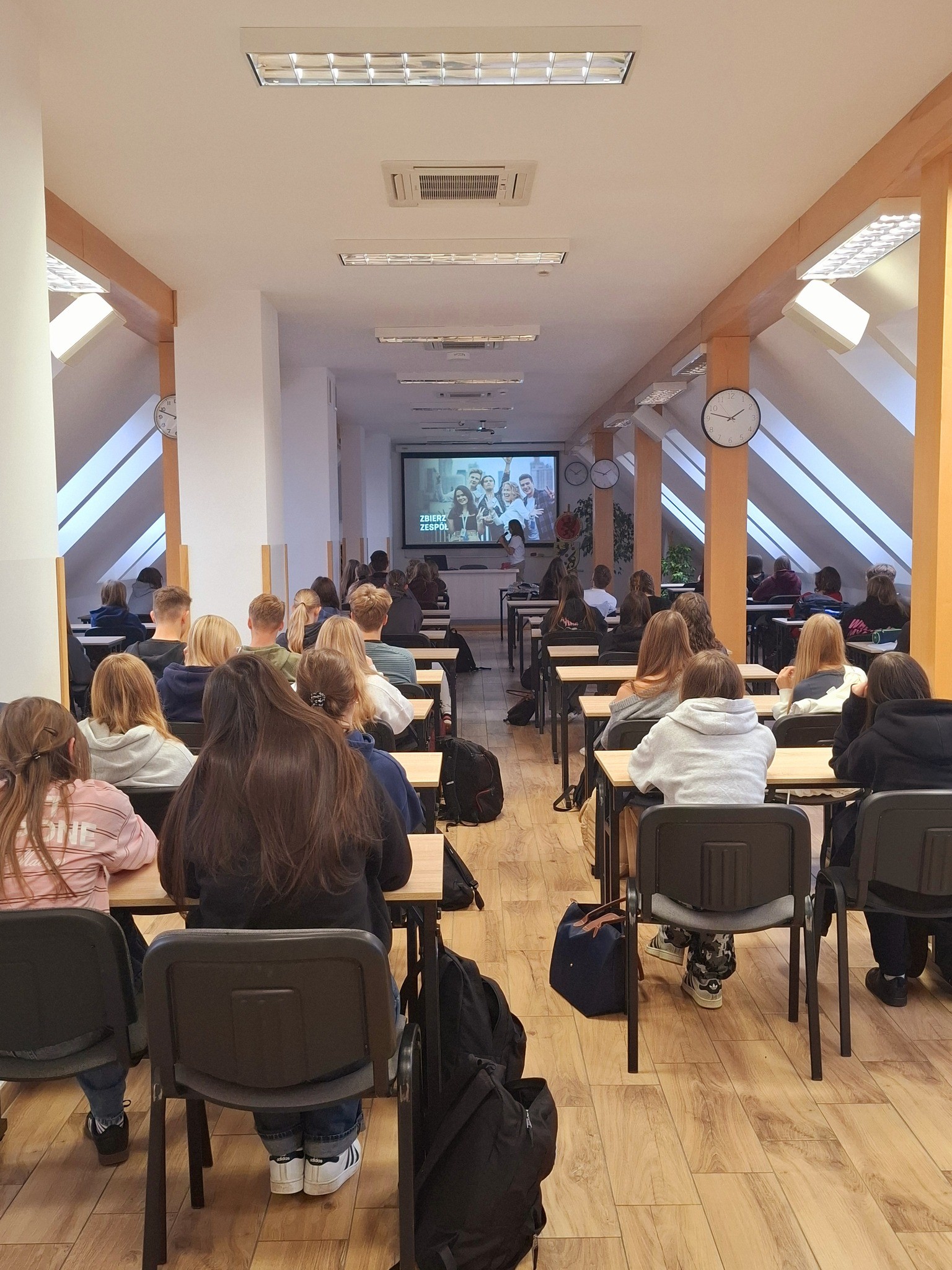 W poniedziałek w godzinach popołudniowych odbyło się wyjątkowe spotkanie z młodą ambasadorką Olimpiady Zwolnieni z Teorii, Natalią Kajmą, która opowiedziała zebranym w sali konferencyjnej uczniom o korzyściach płynących z wprowadzania w życie własnych kampanii społecznych oraz zachęcała do stworzenia autorskich projektów w ramach olimpiady. Uczniowie mieli przestrzeń do zadawania pytań, otrzymali również ulotki z niezbędnymi informacjami. W ubiegłym tygodniu podobne spotkania przeprowadziła wśród pierwszych klas także nasza uczennica, Agata Wojciechowska, która w poprzednim roku szkolnym, wraz z kolegami i koleżankami, zrealizowała wartościowy projekt o nazwie Decybelomierz. Dziękujemy za podzielenie się cenną wiedzą i czekamy na wasze nowe, niezwykłe projekty ❤