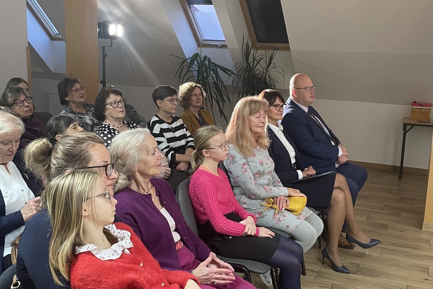 6 listopada w I Liceum Ogólnokształcącym w Rumi miało miejsce bardzo miłe wydarzenie 🙂 Odbył się wernisaż poetycki „Babie lato” pani Bogumiły Gussmann, absolwentki naszej szkoły. Z tej okazji mogliśmy posłuchać wierszy pani Bogumiły w wykonaniu uczennic, posłuchać nastrojowych piosenek a także wywiadu z artystką. Tego dnia szkolna biblioteka zamieniła się w salę wystawową wypełnioną pracami malarskimi naszej gościni. Ten wzruszający wieczór stał się również okazją do spotkania znajomych pani Bogumiły z lat szkolnych. Wśród gości obecny był również starosta wejherowski pan Marcin Kaczmarek.