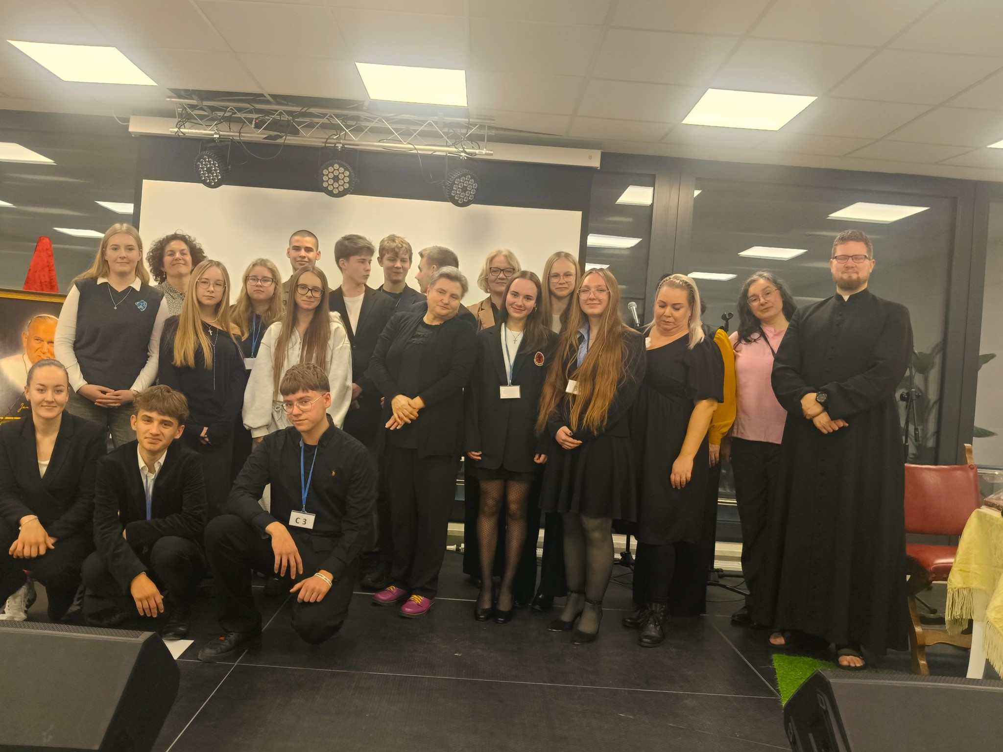 W piątek, 28 listopada uczennice naszej szkoły: Amelia Rzemińska, Agata Cichosz i Weronika Arciszewska z klasy 3a wzięły udział w XVIII Powiatowym Konkursie o Janie Pawle II. Amelia zajęła I miejsce indywidualnie w teście wiedzy o życiu i działalności papieża. I miejsce zdobyła również Agata w kategorii artystycznej, prezentacji miejsca związanego z wizytą papieża w czasie pielgrzymki do Polski. Cała drużyna, po części pisemnej i ustnej zajęła I miejsce.
