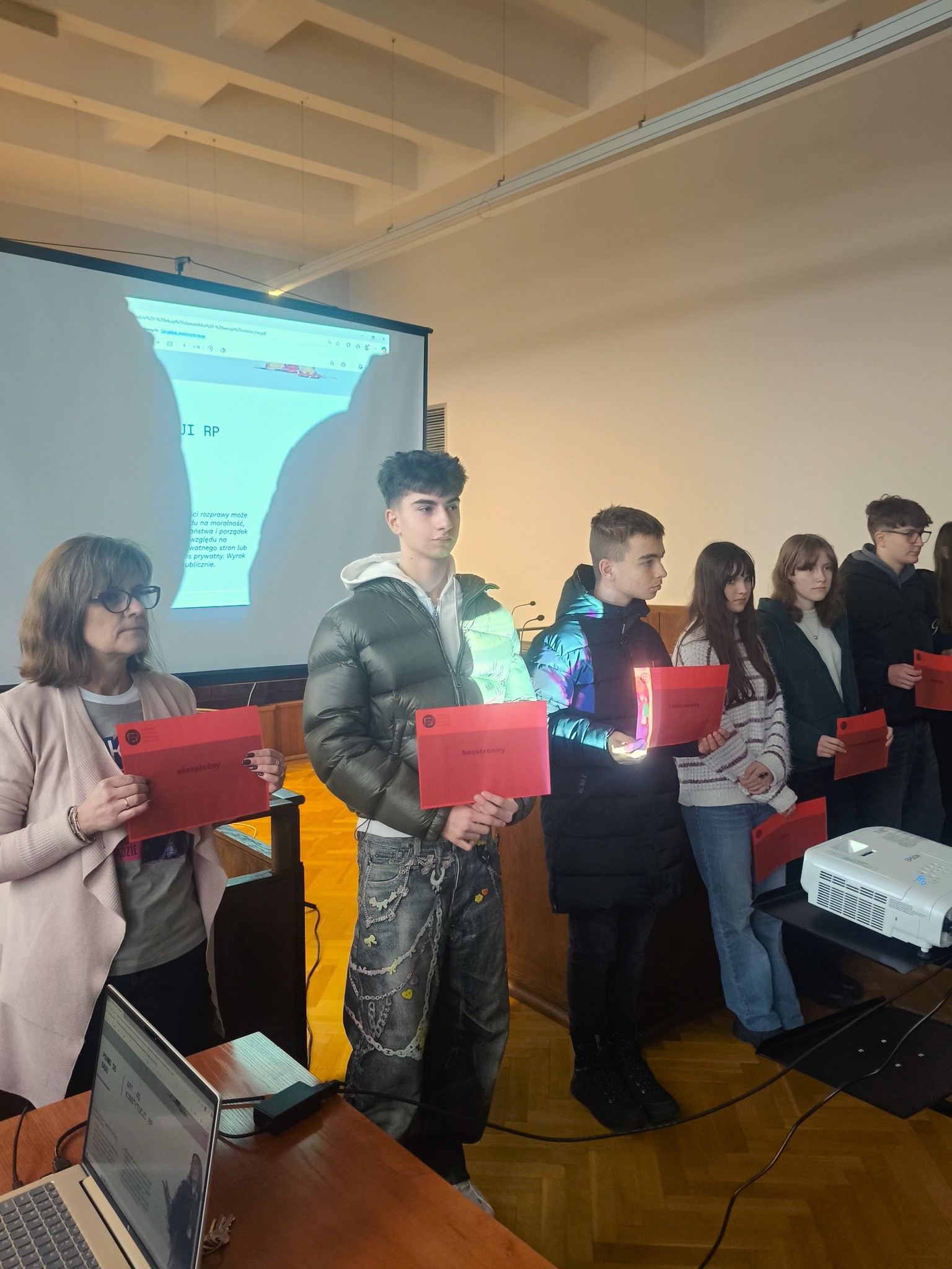 W środę 25 listopada grupa młodzieży kl.1a,1e oraz 2a wybrała się do Sądu Rejonowego w Gdyni. Tam, w ramach ministerialnego projektu, którego celem jest propagowanie wiedzy prawniczej wzięła udział w lekcji na temat konstytucji i systemu prawnego RP. Pani sędzia w ciekawy, przystępny sposób przedstawiła informacje o władzy sądowniczej i ścieżce kariery prawniczej włączając uczniów do wspólnej aktywności. Na koniec spotkania młodzież miała wiele pytań dotyczących studiów prawniczych i perspektyw zawodowych po ukończeniu studiów prawniczych.
