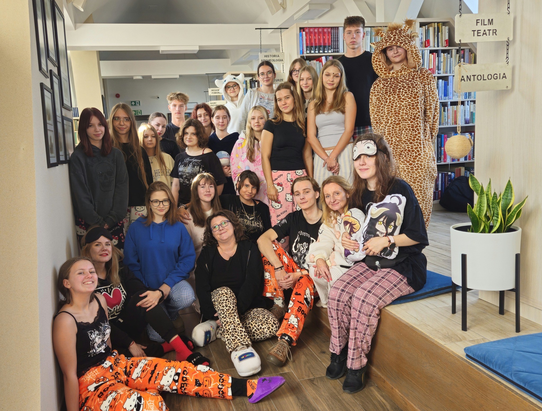 Za nami pełen uśmiechu Ogólnopolski Tydzień Szczęścia w Szkole. Hasło tegorocznej akcji to Szczęśliwi, bo różnorodni, postanowiliśmy więc skupić się na lepszym poznaniu siebie nawzajem i budowaniu nowych relacji. Na specjalnej tablicy umieściliśmy informację o tym, co nam daje różnorodność. Uczniowie mogli również na niej zapisać czym jest dla nich szczęście, co nas wszystkich łączy oraz pochwalić się swoim talentem. Przez cały tydzień funkcjonowała również Poczta Życzliwości, dzięki której można było przekazać wybranym osobom za co jest się im wdzięcznym. W poniedziałek uczniowie klas pierwszych wzięli udział w grze integracyjnej Speed friending - school edition, podczas której mieli okazję odbyć szybkie, kilkuminutowe rozmowy z kolegami z równoległych klas, dzięki czemu z pewnością zwiększył się ich krąg znajomych. We wtorek, z okazji Dnia Chłopaka, został przygotowany słodki poczęstunek od dziewczyn dla chłopaków w naszej klimatycznej, szkolnej kawiarence. Samorząd Uczniowski przygotował także drobne upominki dla każdego chłopaka i rozdawał je podczas przerw. W środę na korytarzach było wesoło i kolorowo - Dzień Piżamy przypadł wielu osobom do gustu, bo w tych niecodziennych strojach można było zobaczyć zarówno uczniów jak i nauczycieli! W czwartek, z myślą o nadchodzącym Dniu Zwierząt, zorganizowaliśmy charytatywny kiermasz ciast i wegetariańskich oraz wegańskich przekąsek, zbierając datki dla Schroniska dla zwierząt OTOZ Animals w Dąbrówce. Przeprowadzone zostały również warsztaty szycia legowisk. Niesamowitym uwieńczeniem Tygodnia Szczęścia w Szkole było piątkowe nocowanie w szkole w klimacie prosto z Hollywood. Uczniowie i nauczyciele przebrani za znane filmowe postacie lub w strojach godnych czerwonego dywanu wspólnie bawili się do rana tańcząc, oglądając filmy, grając w siatkówkę czy robiąc bransoletki i slimy. Oprócz Ogólnopolskiego Tygodnia Szczęścia w Szkole, obchodziliśmy również Tydzień Przeciwdziałania Przemocy Rówieśniczej, podczas którego w naszej szkole odbywały się lekcje tematyczne i różnorodne działania profilaktyczne. Oba tygodnie pięknie się ze sobą połączyły - promując życzliwość, empatię i wzajemne zrozumienie, które są fundamentem szczęścia i bezpiecznych relacji. To był niezwykły czas pełen uśmiechu, wzruszeń i dobrej energii - pokazaliśmy, że razem możemy tworzyć miejsce, w którym każdy czuje się ważny, akceptowany i szczęśliwy. #TydzieńSzczęścia #RóżnorodniIRazem #StopPrzemocy #SzkołaZŻyczliwością