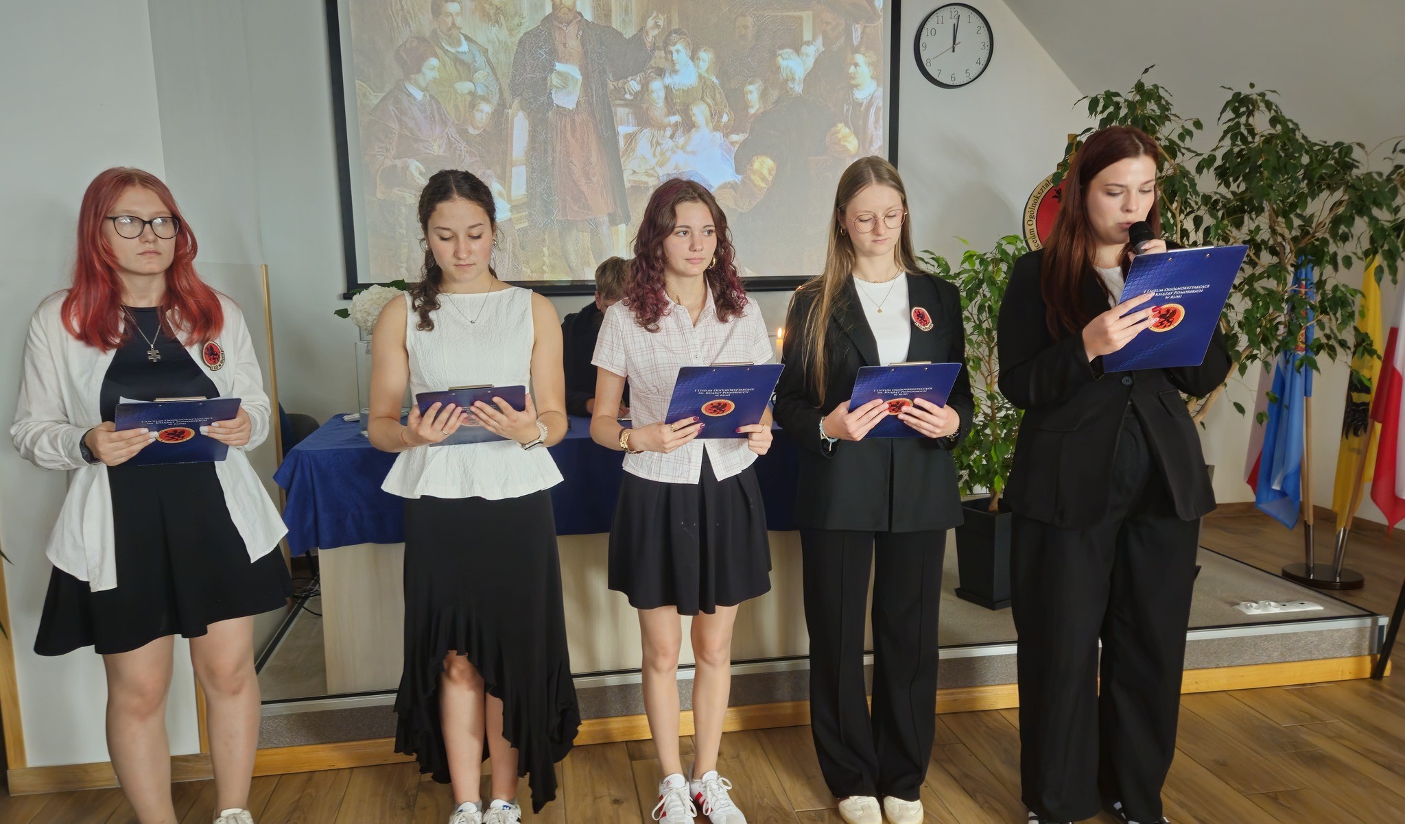 Dnia 8 września w ramach Narodowego Czytania odbyło się spotkanie z Janem Kochanowskim, który opowiedział o swoim życiu i twórczości. Zespół teatralny pod kierunkiem pani Joanny Pieper zaprosił na uroczystość klasy pierwsze. Uczniowie mieli okazję wysłuchać fraszek, pieśni i trenów poety oraz przekonać się, że twórczość Jana z Czarnolasu obecna jest również wśród współczesnych artystów, którzy proponują ciekawe aranżacje jego poezji. Na koniec spotkania uczniowie dostali zakładki z wizerunkiem poety, na których zapisywali cytaty, bliskie wartościom, które wyznają.