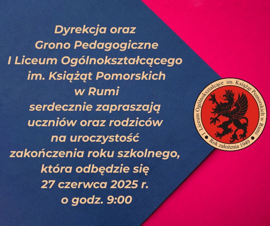 Zapraszamy na uroczyste zakończenie roku szkolnego 2024/2025