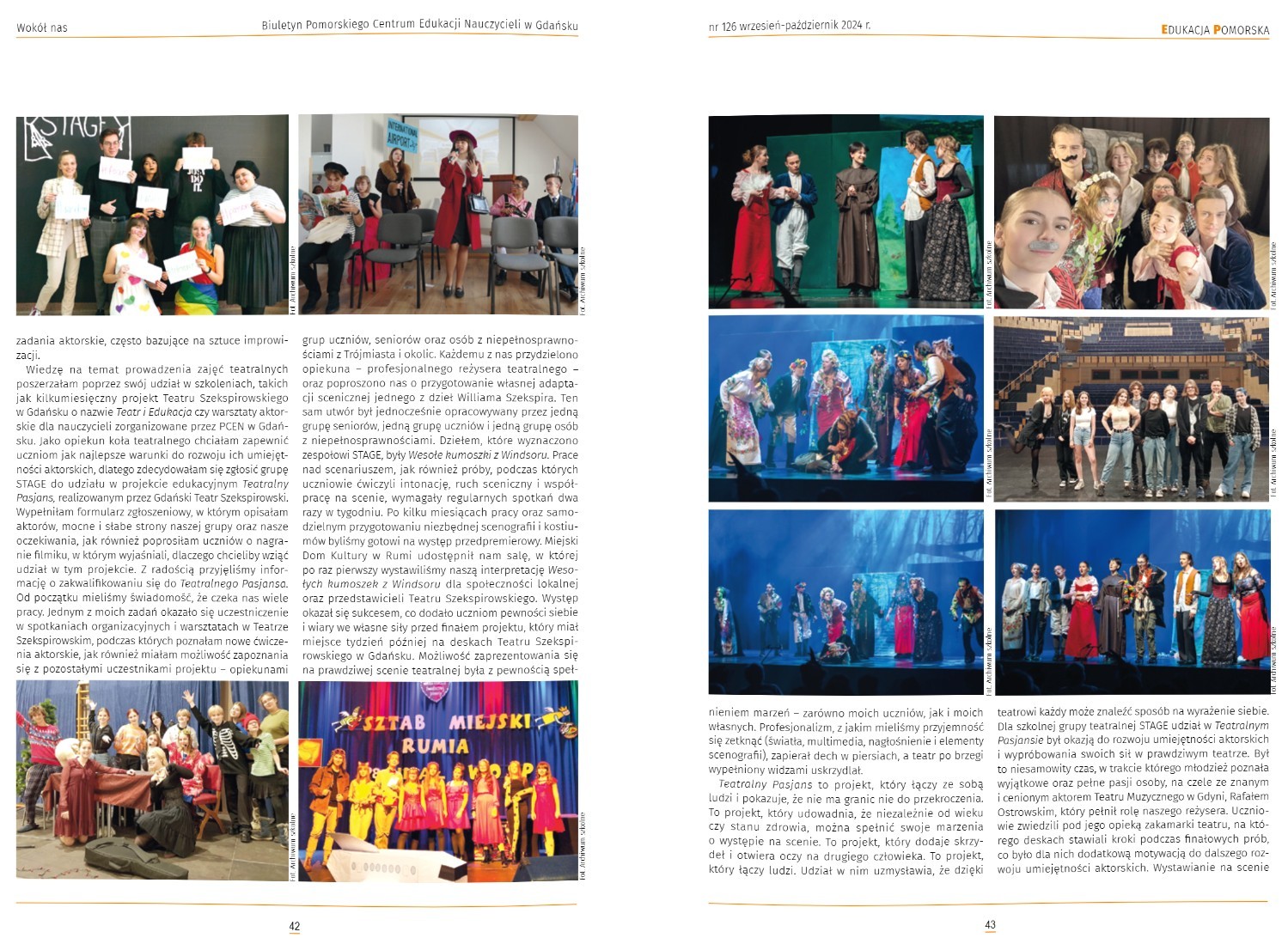 Dobiega końca kolejny rok szkolny współpracy nauczycielek naszej Szkoły w Pomorskim Centrum Edukacji Nauczycieli w Gdańsku. W Biuletynach Edukacji Pomorskiej mogą Państwo przeczytać artykuły autorstwa pani Agaty Schulz (nr 126 strona 41 oraz nr 128 strona 27) 5 kroków do polepszenia dobrostanu psychicznego uczniów oraz STAGE - od szkolnych występów po debiut na scenie Teatru Szekspirowskiego. Pani Małgorzata Turyn kolejny raz reprezentowała naszą Szkołę w trakcie Giełdy Inspiracji, która jest unikalną możliwością zapoznania się z ciekawymi projektami edukacyjnymi oraz innowacjami pedagogicznymi realizowanymi w ostatnim czasie w pomorskich szkołach podstawowych i ponadpodstawowych. Zachęcamy Państwa do lektury artykułów (linki poniżej).