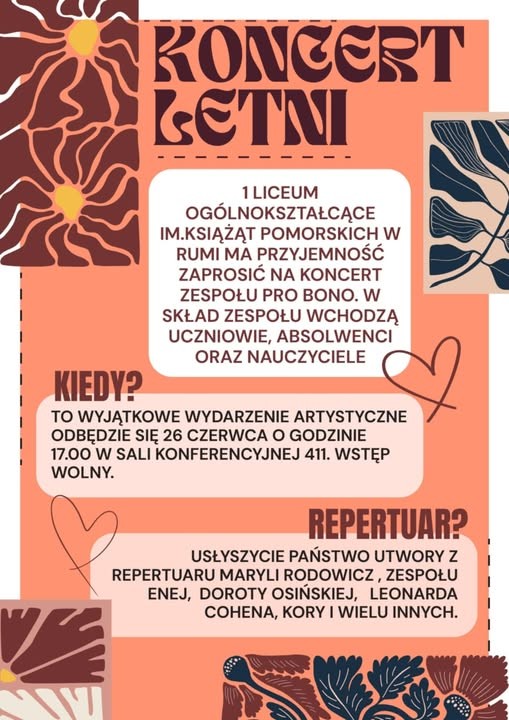 Zapraszamy na koncert 26 czerwca 2025 o 17.00 w sali konferencyjnej 411