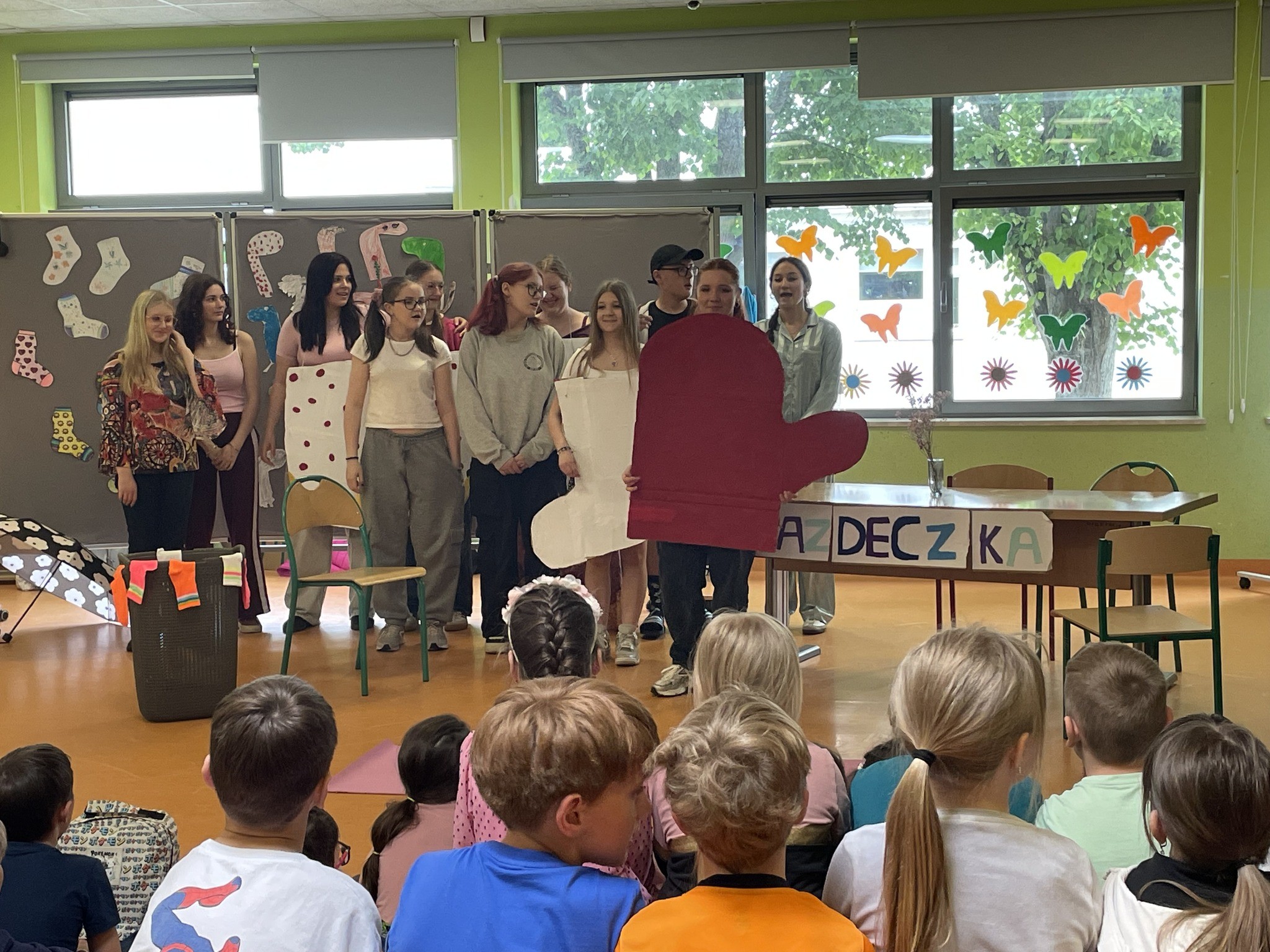 11 czerwca grupa teatralna z naszej szkoły wybrała się do SP nr 1 w Rumi i w ramach obchodów Dnia Dziecka przedstawiła spektakl na podstawie książki Justyny Bednarek pt. „Niesamowite przygody 10 skarpetek”. Publiczność odebrała spektakl bardzo pozytywnie, dzieci chętnie wchodziły w interakcję z aktorami, a sami artyści stwierdzili, że była to ich najlepsza i najszczersza publika.Tym bardziej brawa końcowe bardzo ich ucieszyły! Aktorzy cieszyli się, że mogli sprawić radość najmłodszym uczniom, jednocześnie ćwicząc obycie na scenie.