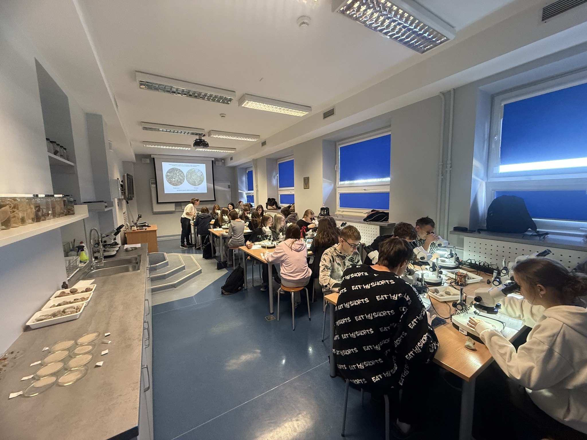 W minionym tygodniu uczniowie grupy geograficznej klas 1B–1D mieli okazję wziąć udział w niezwykłej wyprawie do Akwarium Gdyńskiego. To nie było zwykłe zwiedzanie — to była prawdziwa podróż przez morskie głębiny świata! 🌍🐠 Największe wrażenie zrobiła nowa ekspozycja przedstawiająca zimne wody Oceanu Atlantyckiego, gdzie można było z bliska przyjrzeć się stworzeniom przystosowanym do życia w ekstremalnych warunkach. Po pełnym wrażeń spacerze wśród meduz i muren, uczniowie zasiedli do warsztatów laboratoryjnych. Tematem była Geologia Morza Bałtyckiego – w ramach zajęć młodzi geolodzy badali skały pod mikroskopem i poznawali genezę powstania morza.