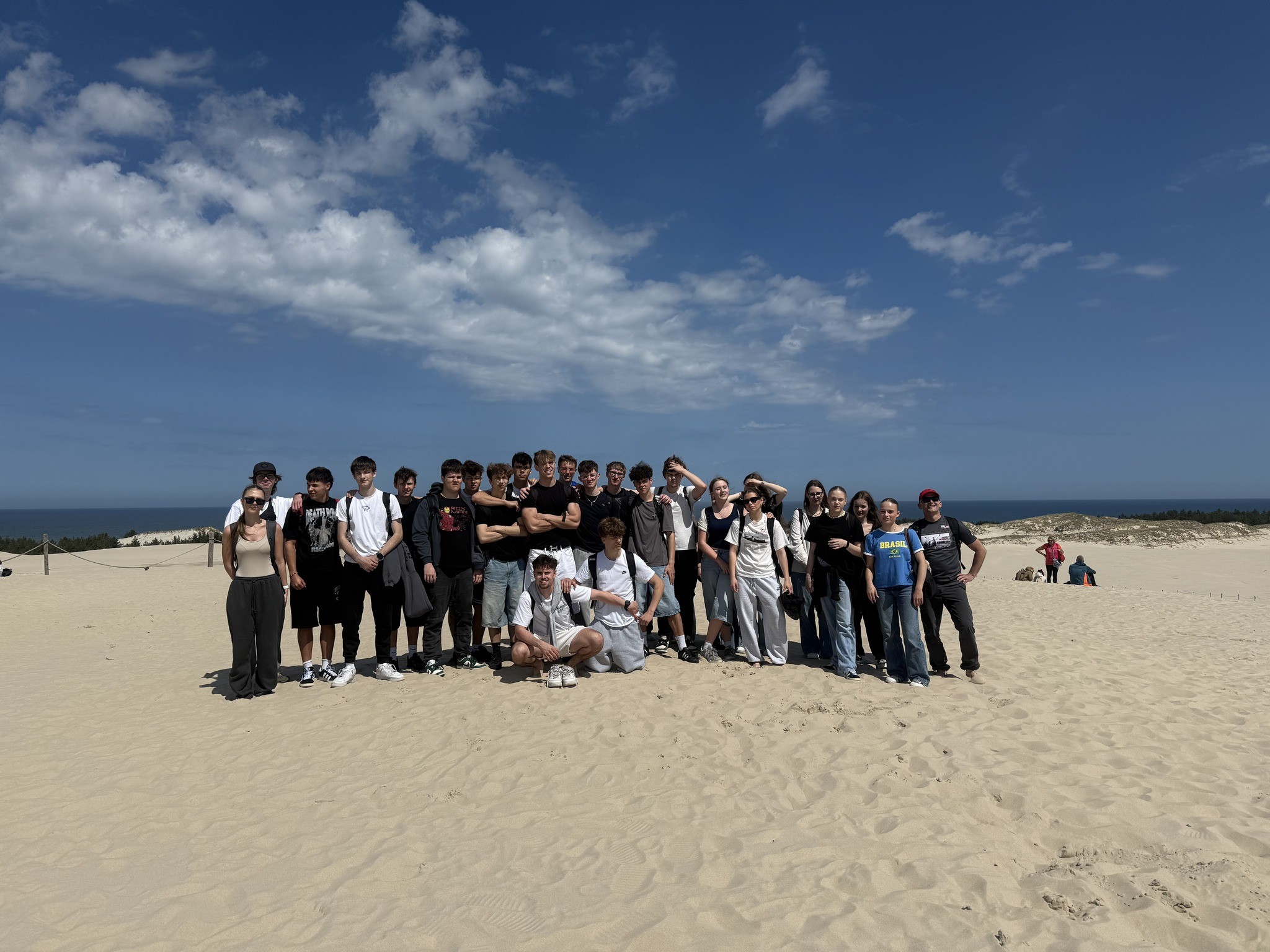 We wtorek 3.06, uczniowie klas 2e i 3e wzięli udział w wycieczce do Słowińskiego Parku Narodowego, gdzie mogliśmy na własne oczy zobaczyć, jak natura rzeźbi teren. Podziwialiśmy m.in. ruchome wydmy, w tym najwyższą –Wydmę Łącką, na której mogliśmy poczuć się jak na pustyni z widokiem na morze i Jezioro Łebsko. To była świetna okazja, żeby połączyć przyjemne z pożytecznym – trochę geografii w praktyce i mnóstwo dobrej energii!