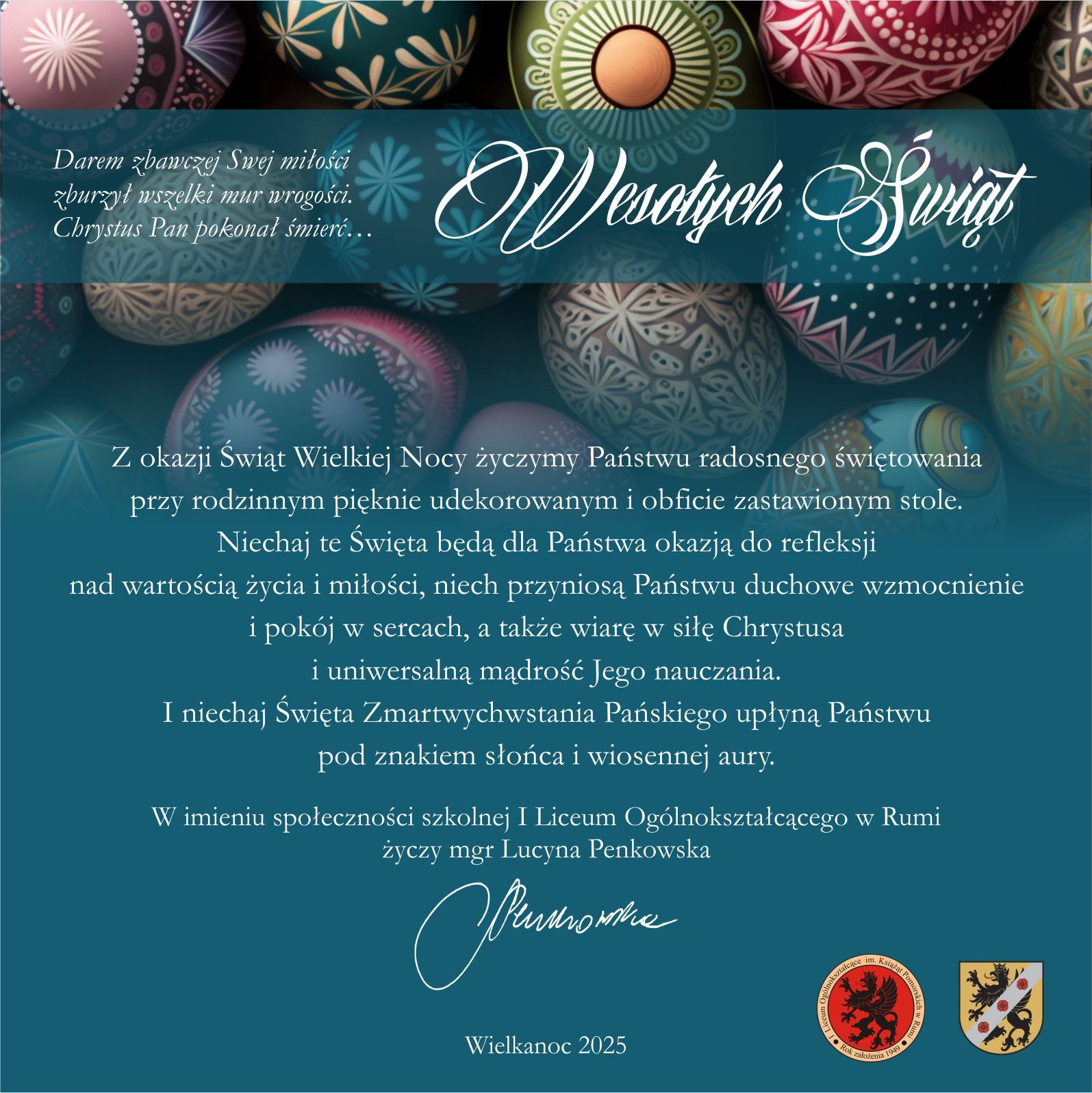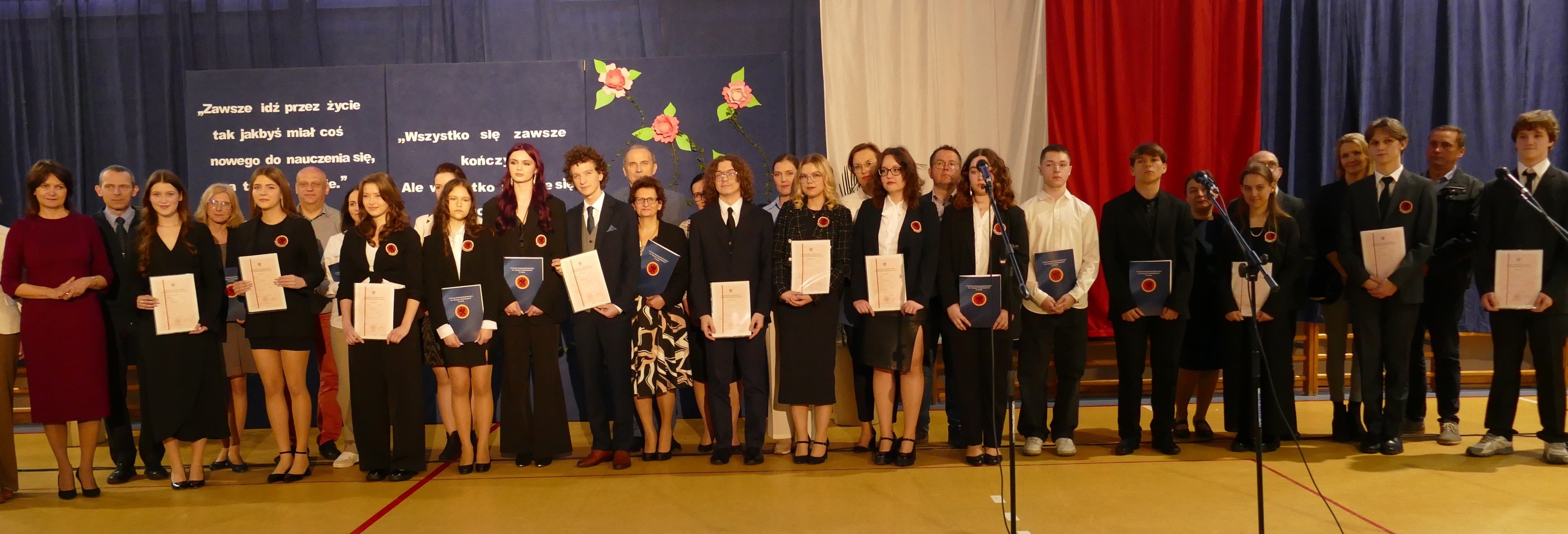1332 dni… tyle czasu minęło od 1 września 2021 roku, gdy tegoroczni uczniowie klas czwartych zaczynali naukę w I Liceum Ogólnokształcącym im. Książąt Pomorskich w Rumi... 1332 dni nauki, poznawania siebie, rozwijania pasji, znajdowania przyjaźni, kształtowania charakterów… Nic dziwnego, że w miniony piątek 25 kwietnia wielu absolwentom trudno było ukryć wzruszenie, gdy podczas uroczystości ukończenia nauki w szkole średniej uświadamiali sobie, że kolejny etap edukacji mają już za sobą. Okazją do refleksji na temat minionego czasu było przede wszystkim poruszające przemówienie, w którym pani Dyrektor Lucyna Penkowska podsumowała ostatnie cztery lata. Wybrzmiały w nim liczne dokonania tegorocznych maturzystów, będące efektem ich aktywnej i twórczej postawy. Docenione zostało zaangażowanie w szkolne projekty, takie jak TeLOw1zja lub „Echo Książąt”, aktywność w Samorządzie Uczniowskim czy udział w programie eTwinning. Nie zabrakło również słów wsparcia w związku z czekającym absolwentów egzaminem dojrzałości oraz zapewnień, że zawsze będą mile widziani w progach naszej szkoły. Podniosłym momentem było z pewnością wręczenie świadectw z wyróżnieniem dla najlepszych uczniów oraz listów gratulacyjnych dla ich rodziców. Chwil wzruszenia i słów wdzięczności nie zabrakło również wtedy, gdy każdy z wychowawców wręczał dyplomy i nagrody nie tylko za dobre oceny, ale i za wysoką frekwencję czy przykładną postawę w dążeniu do zdobywania wiedzy i umiejętności. Nagrodzeni zostali również ci, którzy wykazali się ponadprzeciętną aktywnością w życiu całego I Liceum Ogólnokształcącego w Rumi – członkowie Samorządu Uczniowskiego, grupy teatralnej STAGE, a także współtwórcy TeLOw1zji czy audycji „Echo Książąt”. Wszyscy oni szczególnie mocno wpisali się w historię szkoły i zostawili w niej trwały ślad. Podsumowaniem uroczystości, przygotowanej przez p. Annę Kulikowską i p. Jarosława Tomaszewskiego, był koncert szkolnego zespołu Encore pod przewodnictwem p. Joanny Klein-Szalkowskiej. Po nim absolwenci udali się do klas na spotkanie z wychowawcami, mając w pamięci słowa wplecione przez p. Aleksandrę Prudzienicę-Piotrowicz w dekorację uroczystości: „Wszystko się zawsze kończy. Ale wszystko zawsze się zaczyna”.