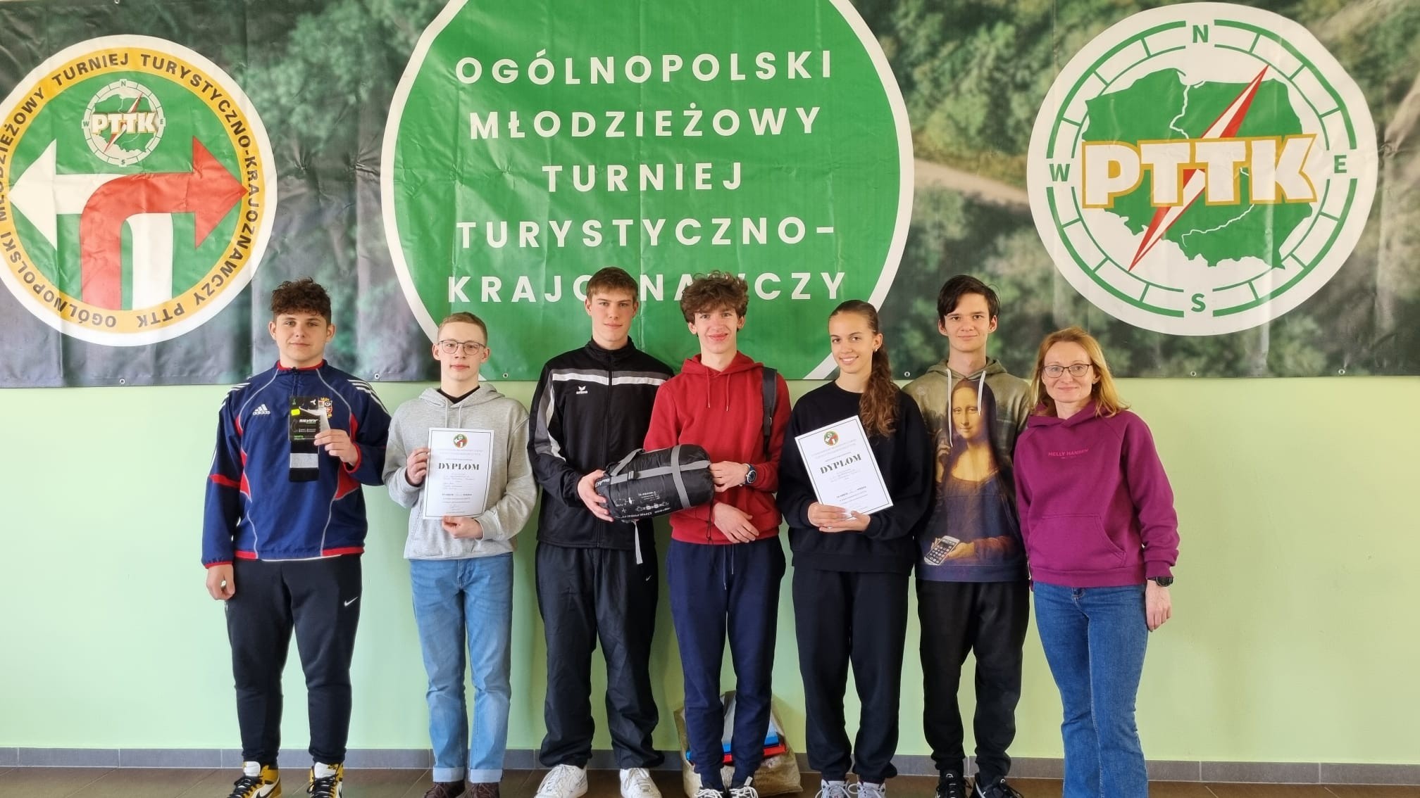 Ogólnopolski Młodzieżowy Turniej Turystyczno - Krajoznawczy PTTK Uczniowie naszej szkoły jak co roku wzięli udział w OMTTK PTTK, który odbył się w Strzebielinie 11 kwietnia 2025 r. Uczestnicy musieli wykazać się wiedzą teoretyczną i topograficzna oraz krajoznawczą Polski, w szczególności województwa pomorskiego i warmińsko - mazurskiego oraz umiejętnościami praktycznymi. Musieli zmierzyć się z rowerowym torem przeszkód, marszem na orientację, rozpalaniem ogniska, zaplanowaniem wycieczki czy udzieleniem pierwszej pomocy przedmedycznej. Wyzwaniem było rozpoznawanie flory i fauny oraz obiektów krajoznawczych Warmii i Mazur. Franciszek Wandtke okazał się najlepszy z testu wiedzy a nasze dwie drużyny w składzie: Szymon Świeczkowski, Artur Pranczk i Jakub Pater oraz Franciszek Wandtke, Marcelina Kaszuba i Marcel Malec uplasowały się odpowiednio na pierwszym i drugim miejscu awansując jednocześnie do finału wojewódzkiego. W kolejnym etapie zmagań, które odbyły się w Gdańsku, drużyna w składzie Franciszek Wandtke, Szymon Świeczkowski i Artur Pranczk zajęła drugą lokatę. W tym roku nie udało się awansować do finału ogólnopolskiego, ale gratulujemy osiągnięć i życzymy powodzenia w kolejnych zmaganiach.