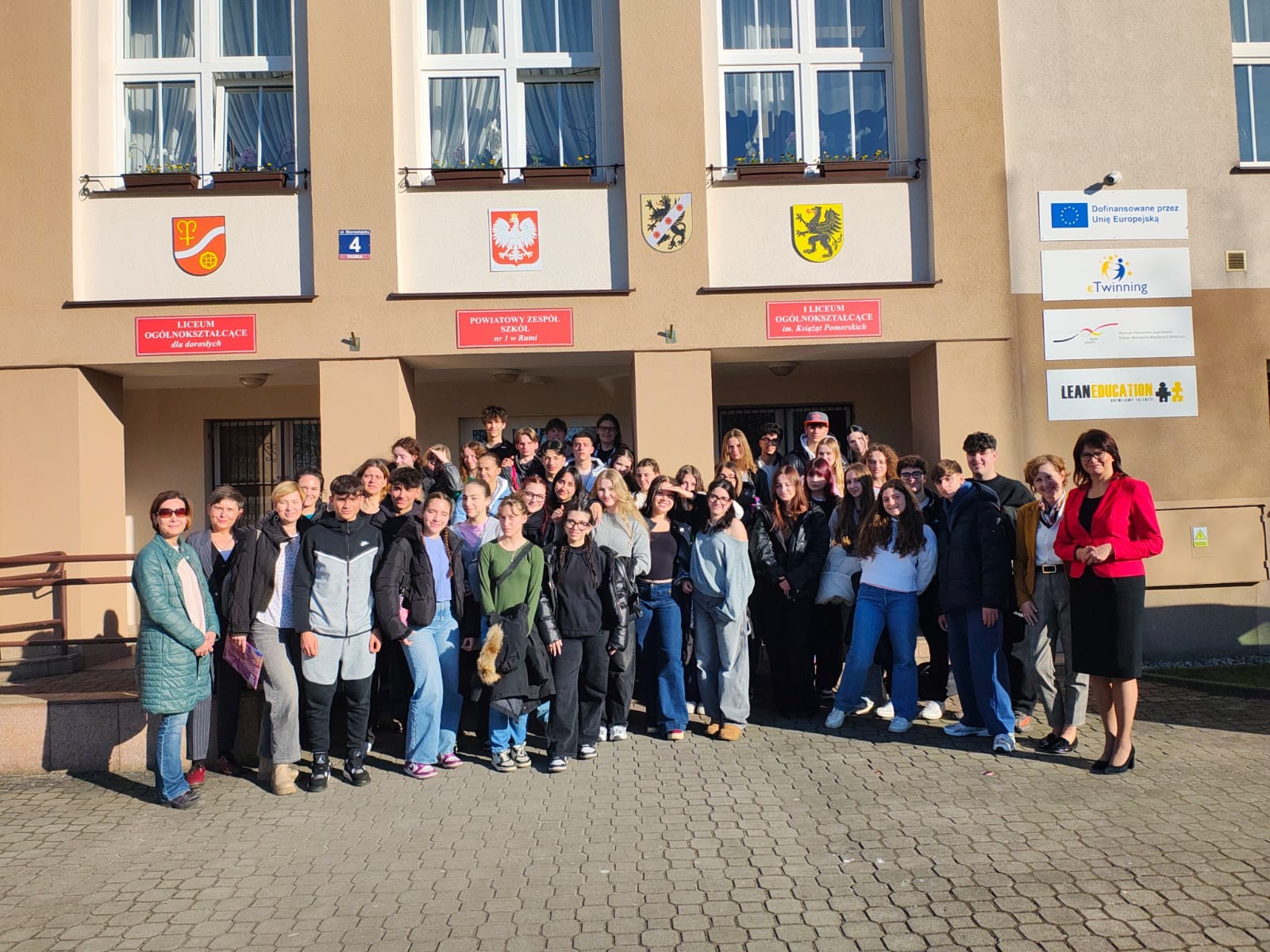 W dniach 25.03 – 30.03. 2025 r. w Liceum Ogólnokształcącym nr 1 w Rumi odbyła się wymiana polsko -włoska. Uczniowie włoscy przyjechali do naszej szkoły z miejscowości Martina Franca z rewizytą. Było to niezwykłe wydarzenie, które pozwoliło młodzieży z obu krajów nie tylko doskonalić umiejętności językowe, ale także lepiej poznać swoje kultury. Jednym z ważniejszych punktów programu była wizyta w Starostwie Powiatowym w Wejherowie. Goście z Włoch mieli okazję zapoznać się z funkcjonowaniem polskiej administracji samorządowej oraz historią regionu. Spotkanie przebiegło w serdecznej atmosferze, a uczniowie mieli możliwość zadawania pytań dotyczących organizacji lokalnego samorządu. Nie mogło zabraknąć wizyty w Gdańsku, jednym z najpiękniejszych miast Polski. Uczestnicy wymiany spacerowali po urokliwej Starówce, odwiedzili Żuraw, Fontannę Neptuna oraz Bazylikę Mariacką. Młodzież miała także okazję poznać historię miasta i jego znaczenie w kontekście europejskim. Zwiedzanie było nie tylko lekcją historii, ale również świetną okazją do integracji. Podczas wymiany uczniowie odwiedzili także Szymbark – miejsce znane z unikalnych atrakcji, takich jak Dom do Góry Nogami czy najdłuższa deska świata. Goście z Włoch byli pod wrażeniem kaszubskiej kultury oraz historii związanej z Sybirakami. Była to niezwykła lekcja historii i patriotyzmu. Podczas pobytu w LO 1 w Rumi uczniowie brali udział w różnorodnych zajęciach integracyjnych oraz lekcjach prowadzonych w języku angielskim. Wspólne warsztaty -lepienie pierogów, gry i projekty edukacyjne pozwoliły uczestnikom lepiej się poznać i nawiązać międzynarodowe przyjaźnie. Czas wolny spędzano na rozmowach, spacerach i wspólnych aktywnościach, co jeszcze bardziej zacieśniło relacje między uczniami. Wymiana polsko-włoska była niezwykłym doświadczeniem, które na długo pozostanie w pamięci wszystkich uczestników. Była to nie tylko okazja do nauki, ale także do budowania mostów między różnymi kulturami oraz nawiązywania międzynarodowych przyjaźni.