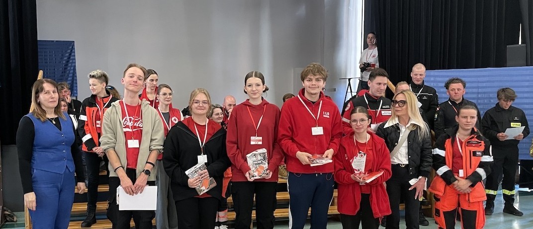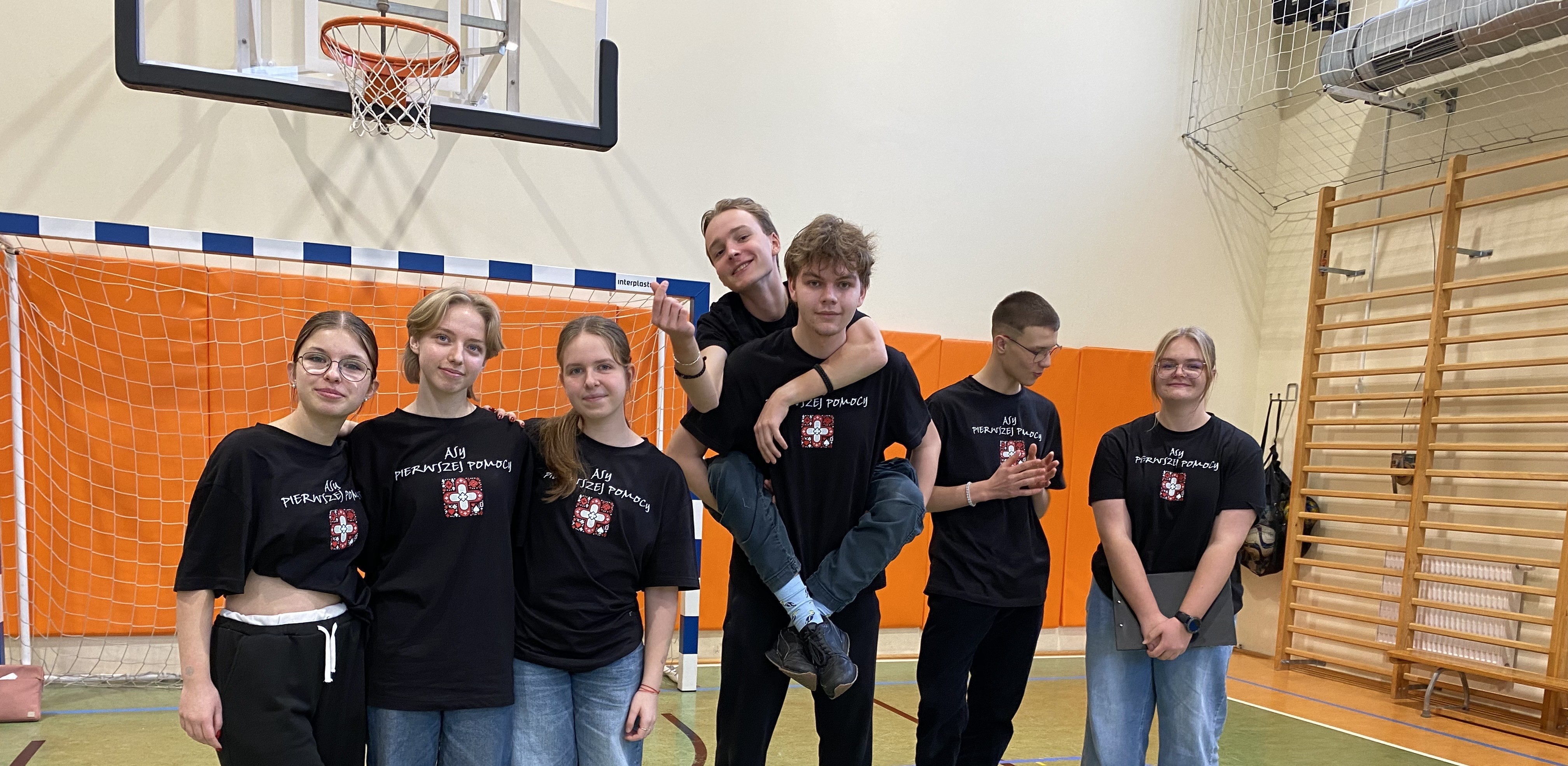 26 kwietnia 2025 r. uczniowie naszej szkoły zajęli III miejsce w rejonowych Mistrzostwach I Pomocy PCK! I LO godnie reprezentowali: Maria Król - kapitan (3c), Antonina Chaber (3c), Aleksander Skrzypiec (3e), Aleksandra Itrich (2c) i Adam Łaski (2c). Dodatkowego wsparcia i pomocy technicznej drużynie udzielała Weronika Szczepańska (3c). Zawody polegały na zespołowym udzielaniu pomocy poszkodowanym na 10 specjalnie przygotowanych stacjach. Każda scena wiernie odwzorowywała potencjalne urazy oraz zachowanie osób biorących udział w zdarzeniu. Rywalizacja była zacięta do samego końca, a o ostatecznym wyniku decydowały drobne różnice punktowe. Wygrali ratownicy z PZS Reda. Zwycięzcom i wszystkim uczestnikom gratulujemy i życzymy dalszych sukcesów. Jednocześnie zapraszamy wszystkich chętnych do brania udziału w zajęciach Szkolnego Koła PCK.