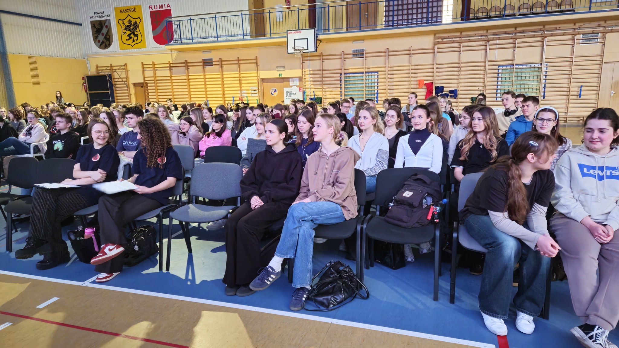 30 kwietnia, z inicjatywy Samorządu Uczniowskiego, został zorganizowany Dzień Kariery. Wśród zaproszonych gości, na których składali się nasi przyjaciele, członkowie rodzin naszych uczniów czy absolwenci, znaleźli się przedstawiciele wielu zawodów takich jak policjant, aktor, dziennikarz, marynarz, dietetyk, architekt, pracownik agencji reklamowej czy właścicielka biura rachunkowego. Uczniowie klas trzecich, zgromadzeni na sali gimnastycznej, usłyszeli różnorodne historie związane z pracą jak również ścieżką kariery, niekiedy krętą lub wyboistą, ale za każdym razem fascynującą. Gościem honorowym Dnia Kariery był polityk i sportowiec - pan Rafał Siemaszko, który opowiedział o swojej niezwykłej przygodzie z piłką nożną. Zaproszone osoby odpowiedziały również na pytania, które chętnie zadawali im przybyli uczniowie. Chcielibyśmy jeszcze raz ogromnie podziękować wszystkim, którzy wzięli udział w tym pouczającym wydarzeniu. Jesteśmy wdzięczni za serce, które włożyliście w prezentację swojej ścieżki kariery oraz za poświęcenie czasu na zainspirowanie młodych ludzi do poszukiwania własnej drogi zawodowej ❤ Pokazaliście, że ścieżka kariery nie zawsze jest taka oczywista, jak mogłoby się nam wydawać i, że mimo potknięć, jesteśmy w stanie wiele osiągnąć oraz prowadzić szczęśliwe, satysfakcjonujące życie. Dziękujemy!