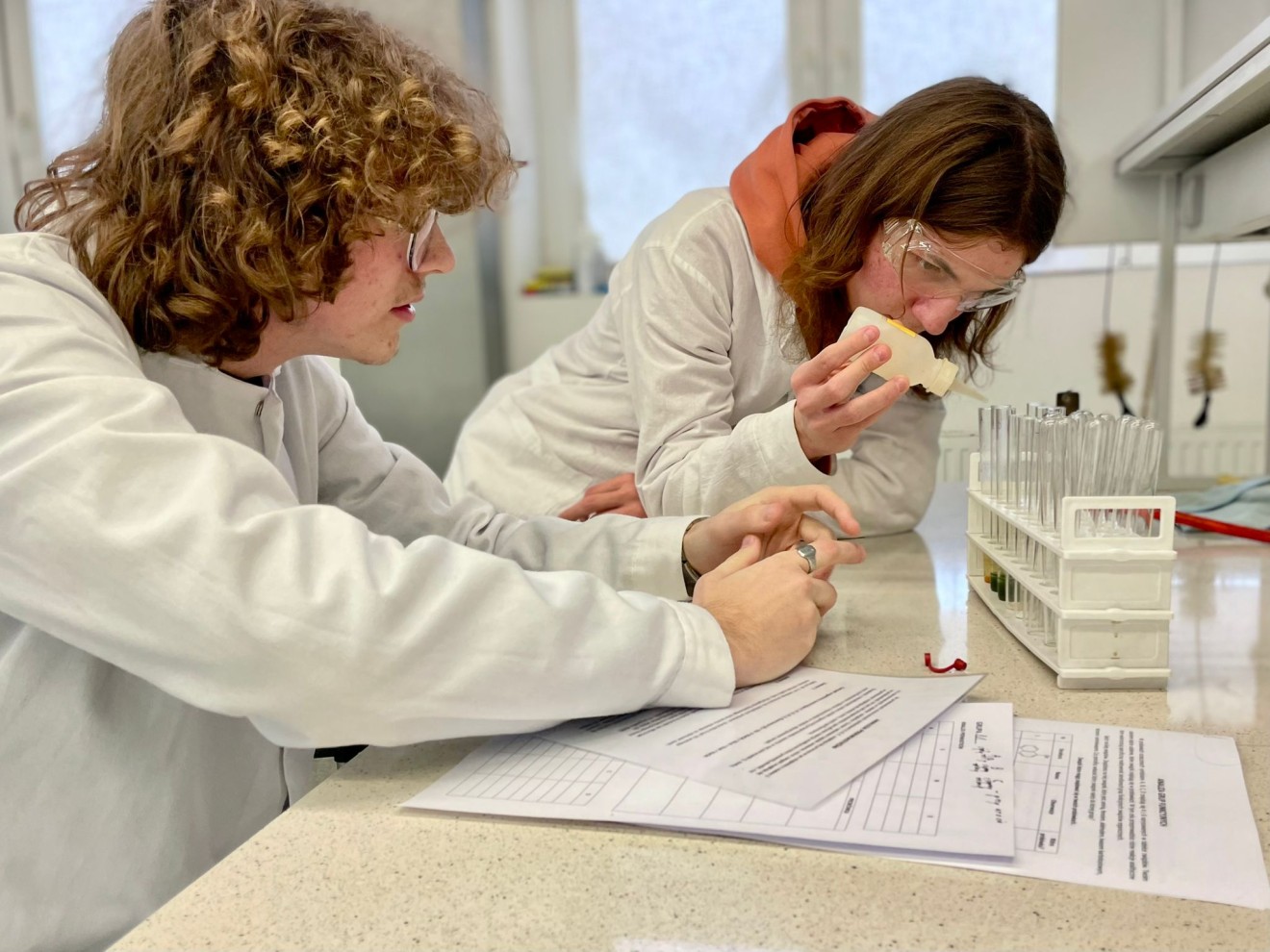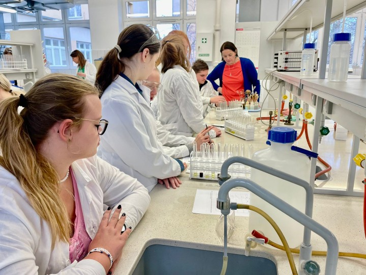 Analiza jakościowa związków organicznych. Wykrywanie pierwiastków i grup funkcyjnych - to tematy zajęć laboratoryjnych, na które zostali zaproszeni uczniowie i uczennice klasy czwartej o profilu farmaceutyczno-medycznym przez pracowników Wydziału Farmaceutycznego Gdańskiego Uniwersytetu Medycznego Katedry i Zakładu Chemii Organicznej. Była to okazja do spotkania z naukowcami, odbycie ciekawych zajęć dydaktycznych i poznania oferty wydziału farmaceutycznego dla naszych przyszłych absolwentów.