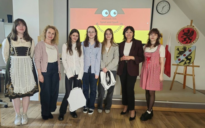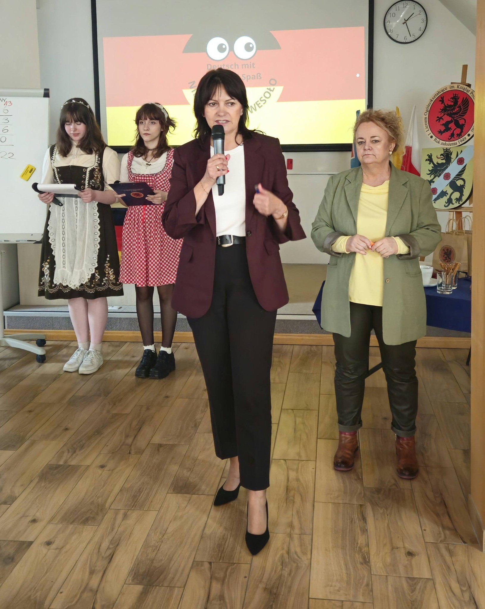 Dnia 13 kwietnia 2026 r. w naszej szkole odbył się II i III etap konkursu języka niemieckiego „Deutsch mit Spiel und Spaß, czyli niemiecki na wesoło”. Do udziału w nim zakwalifikowali się uczniowie klas VII i VIII szkół podstawowych, którzy przystąpili do rywalizacji w trzyosobowych zespołach.